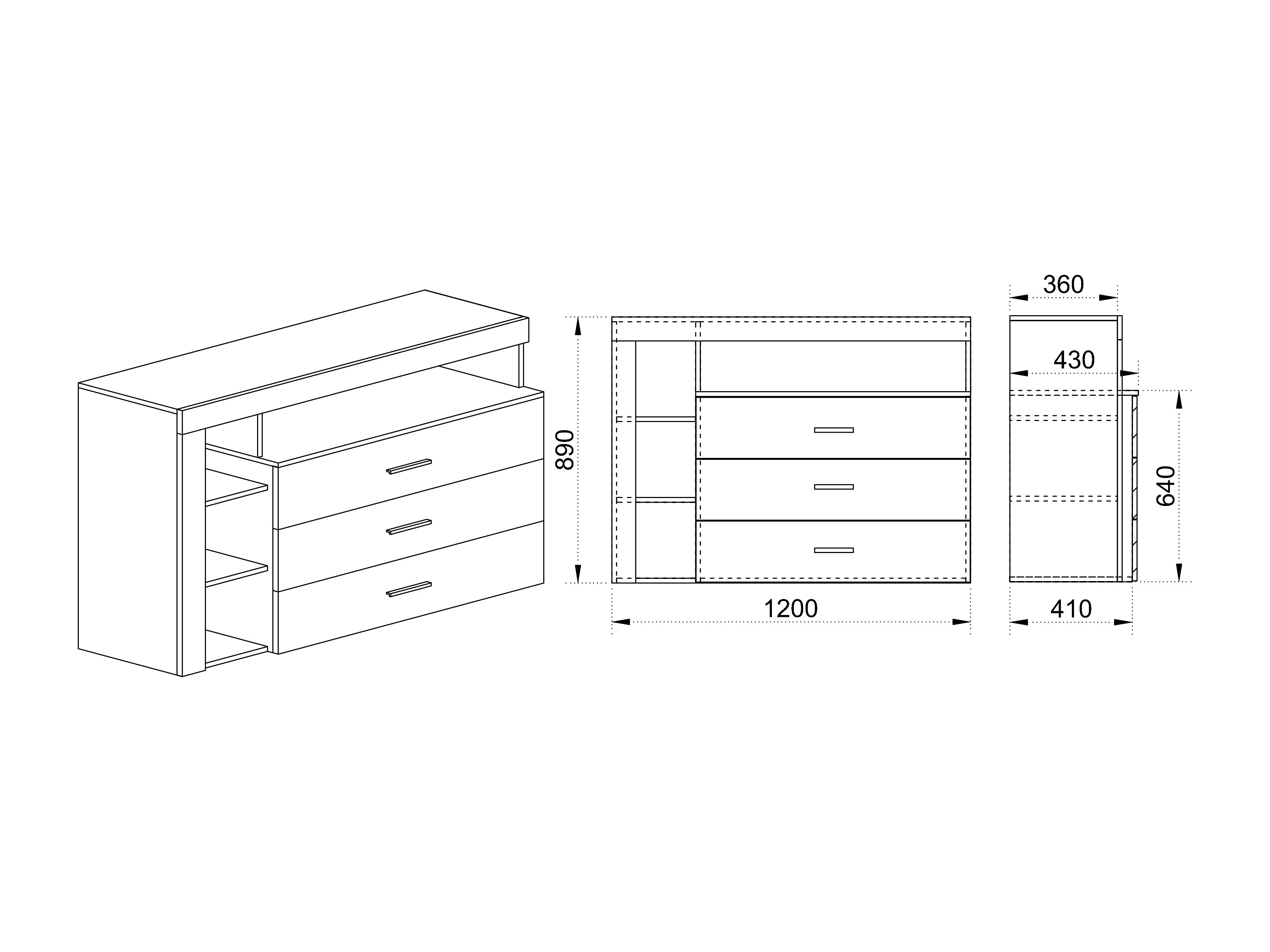 Madia moderna da sala con tre cassetti 120x89 rovere naturale e antracite lucido MI1