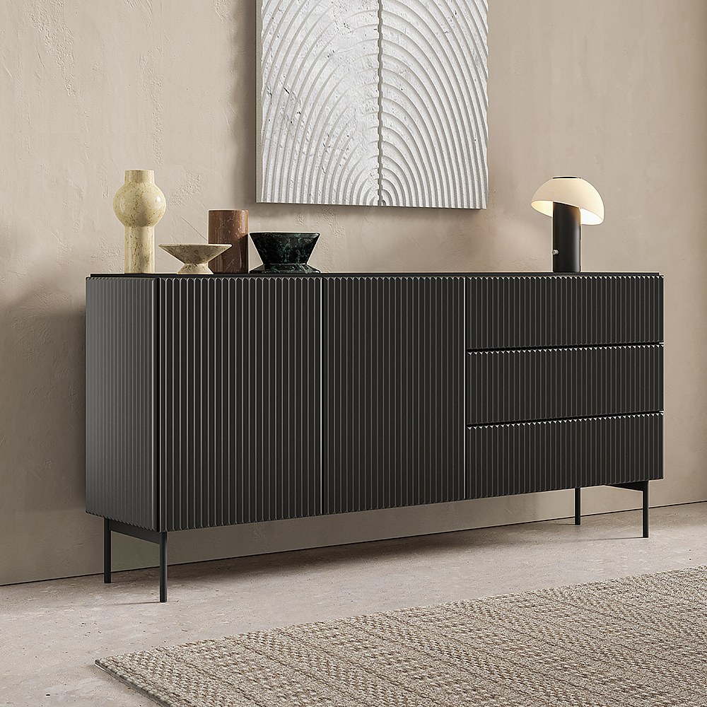 Madia moderna da soggiorno con 2 ante e 3 cassetti beige cashmere MALK43