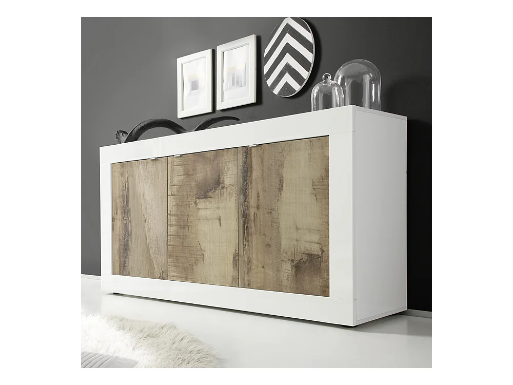 Madia moderna da soggiorno con tre ante battenti design effetto legno 160x86 ML7 bianco e pero