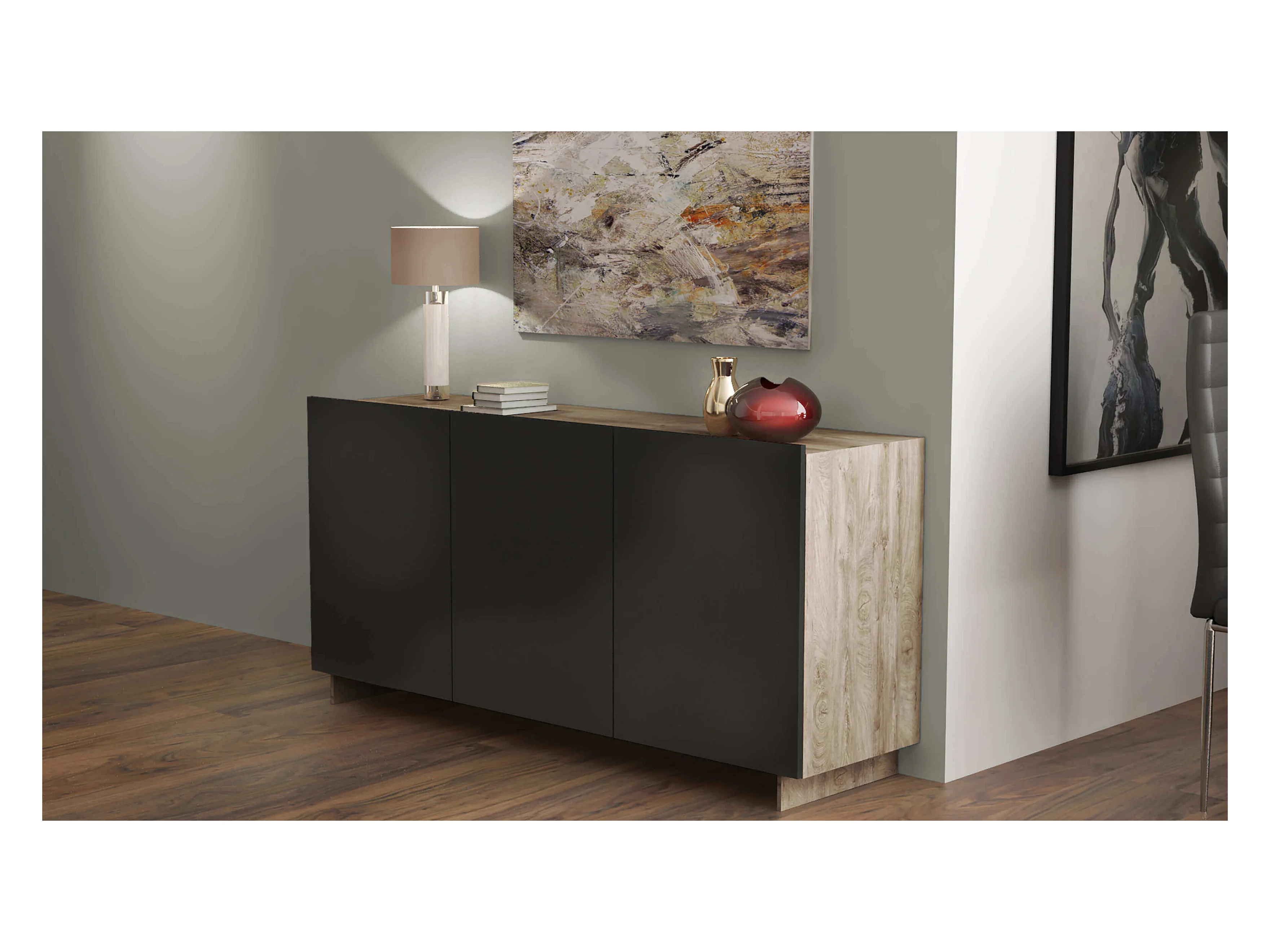 Credenza 3 ante 3 cassetti Lyam marrone e nero 146cm
