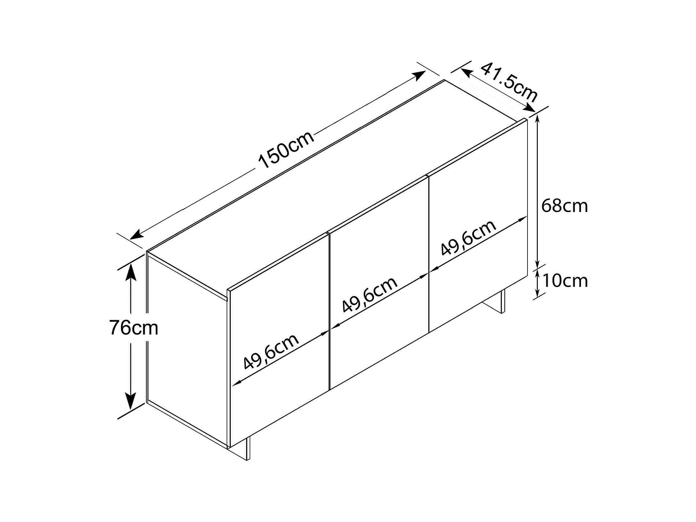MilaniHome.it - madia moderna di design tre ante 150x40x76 hdi coloreNero