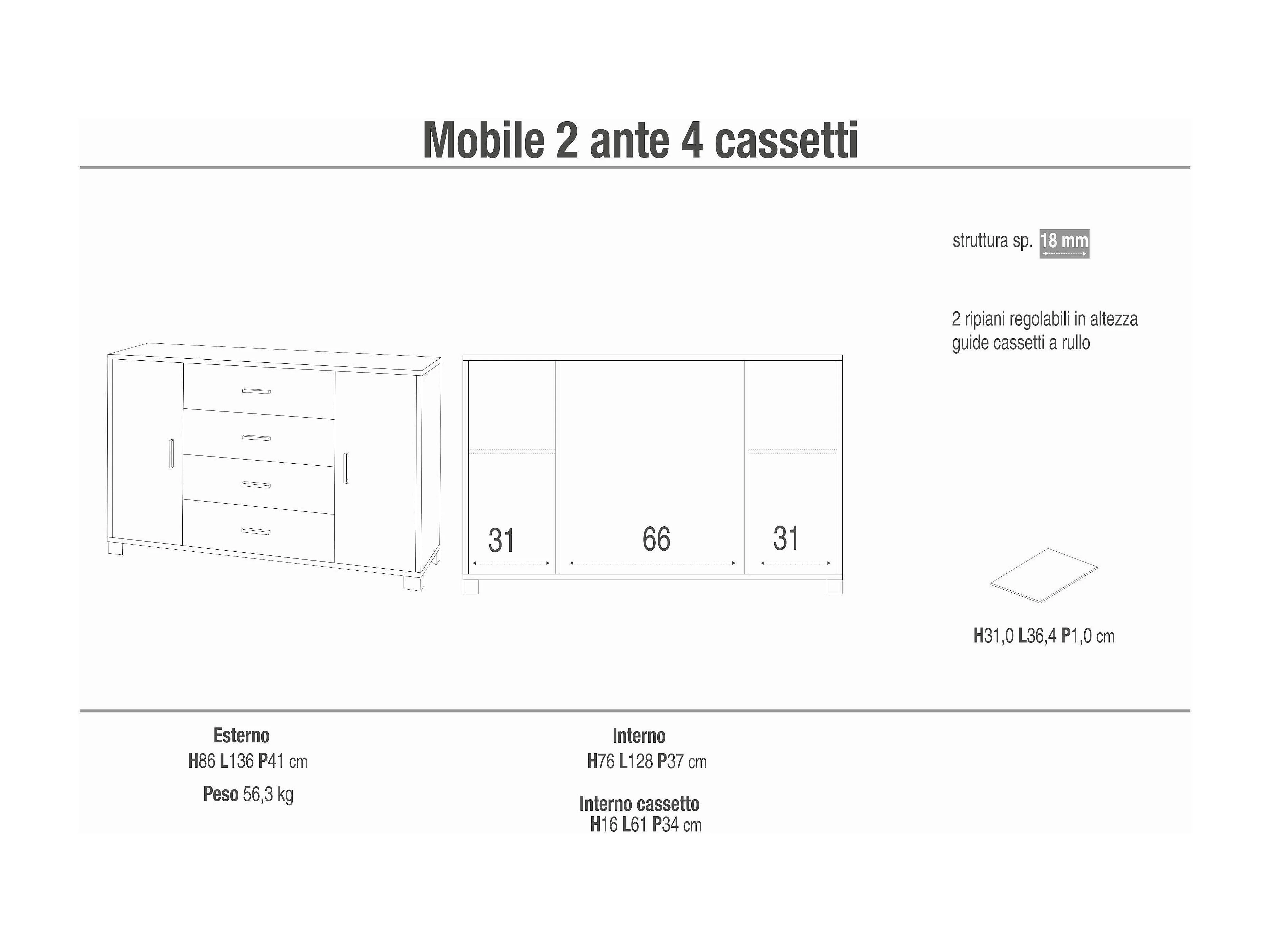 MilaniHome.it - madia moderna per soggiorno di design moderno cm 136 l x 41 p x 86 hdi coloreBianco