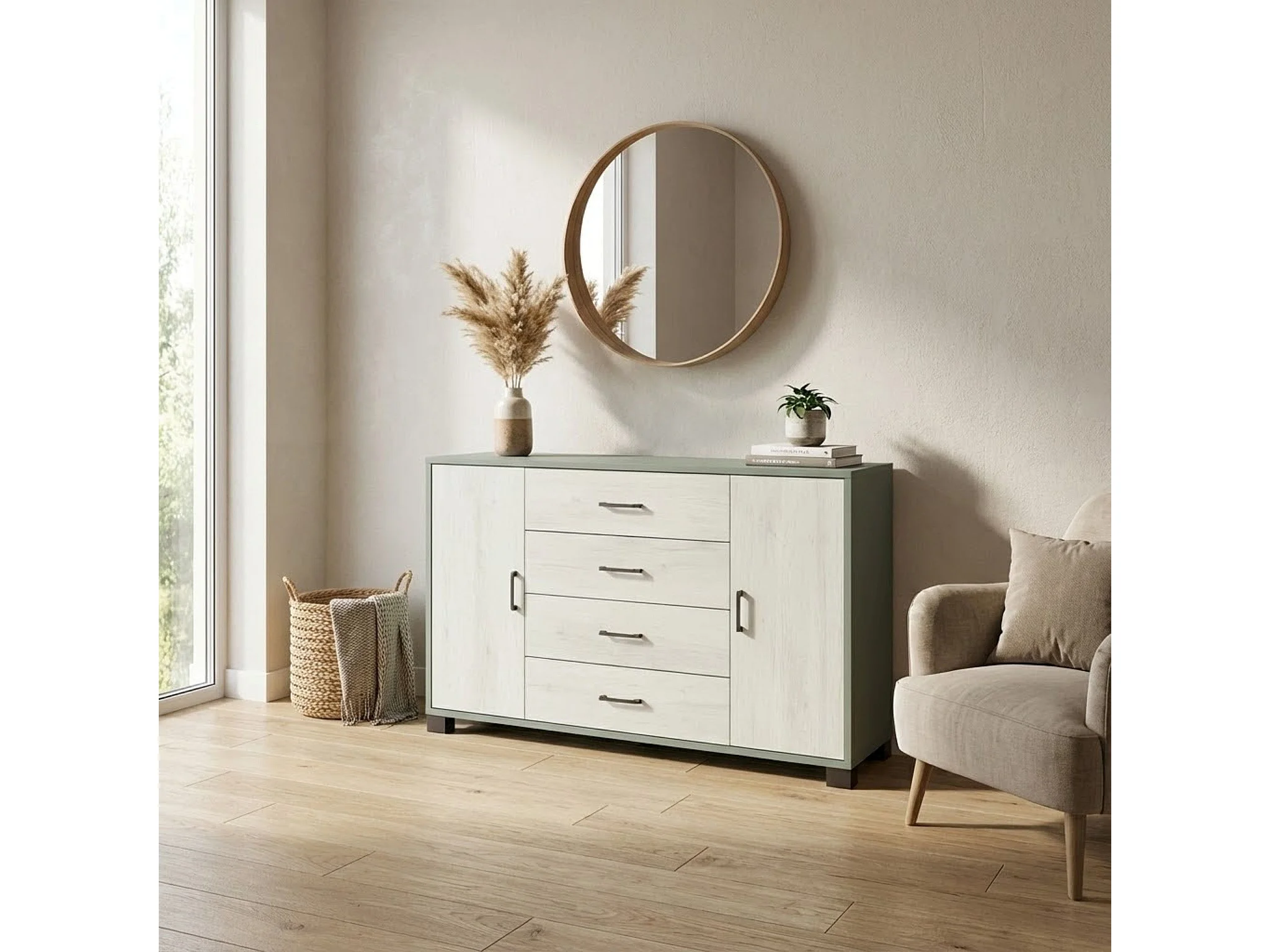 MilaniHome.it - madia moderna con tre cassetti e un anta di design per salotto, soggiorno 119x39,5x85,6 hdi coloreBianco