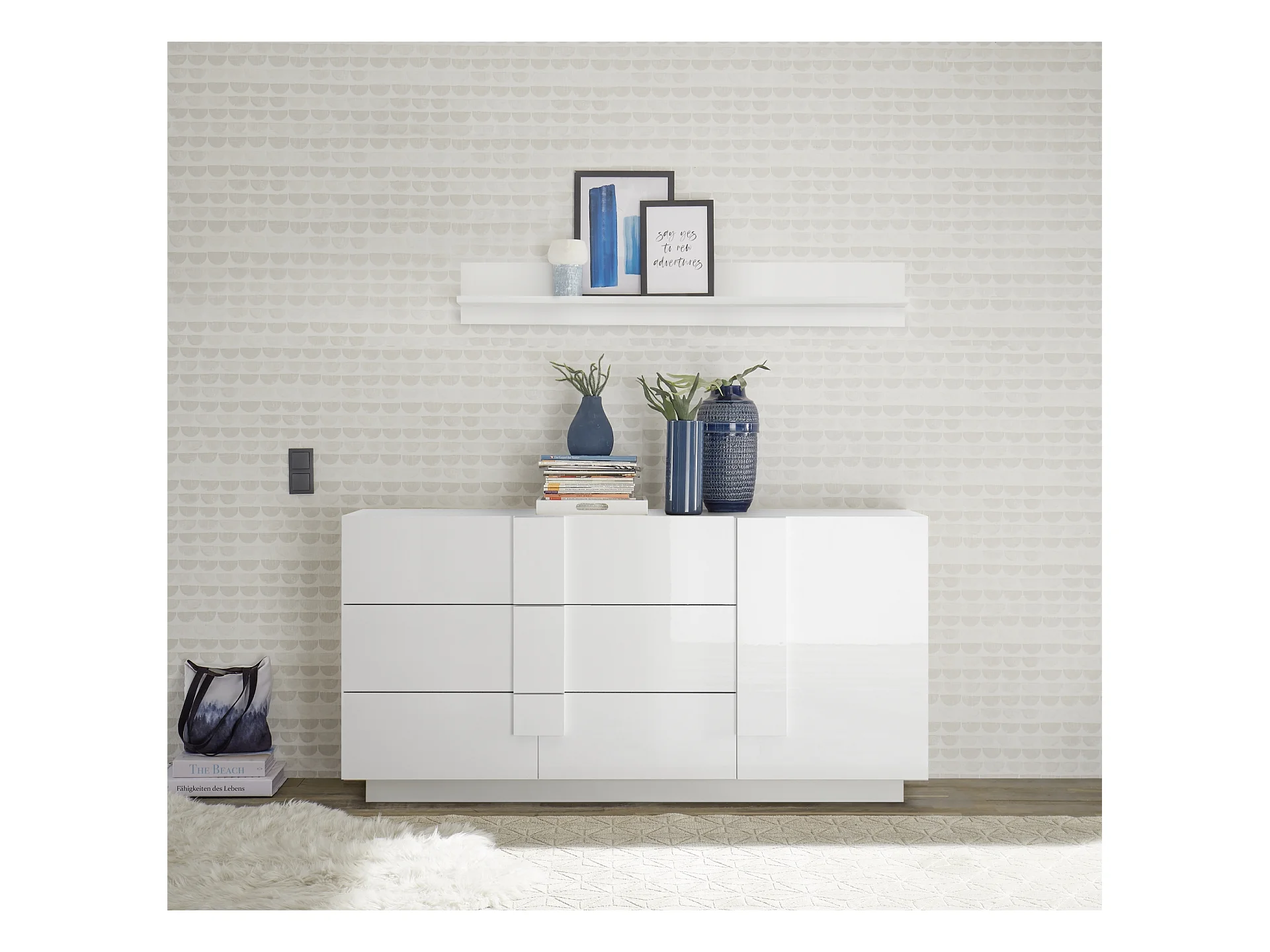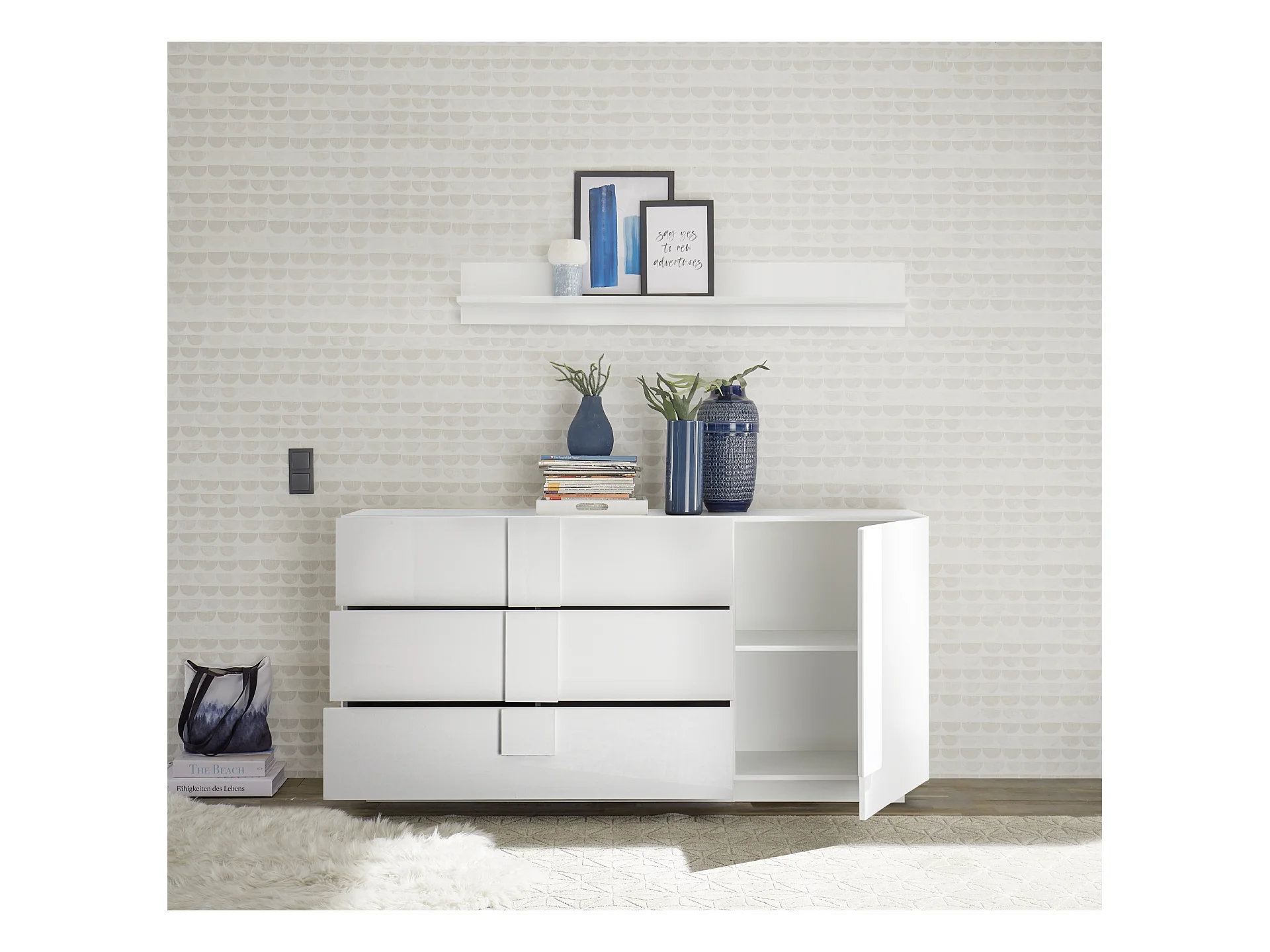 Madia moderna per zona giorno con tre cassetti e anta singola 181x90 ML26 bianco lucido
