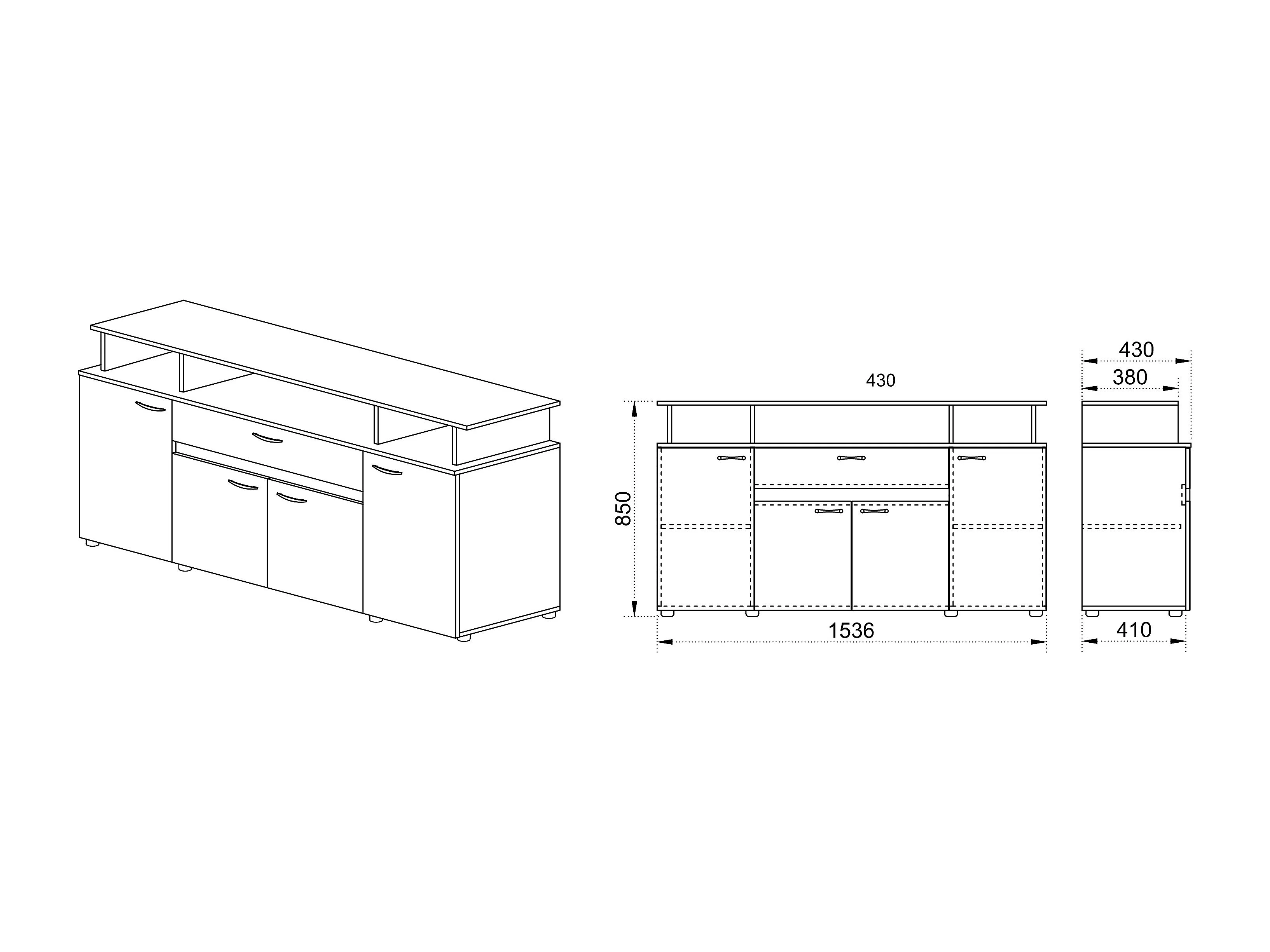 Madia per soggiorno con cassetto e quattro ante effetto legno MI14 153,6x85 rovere