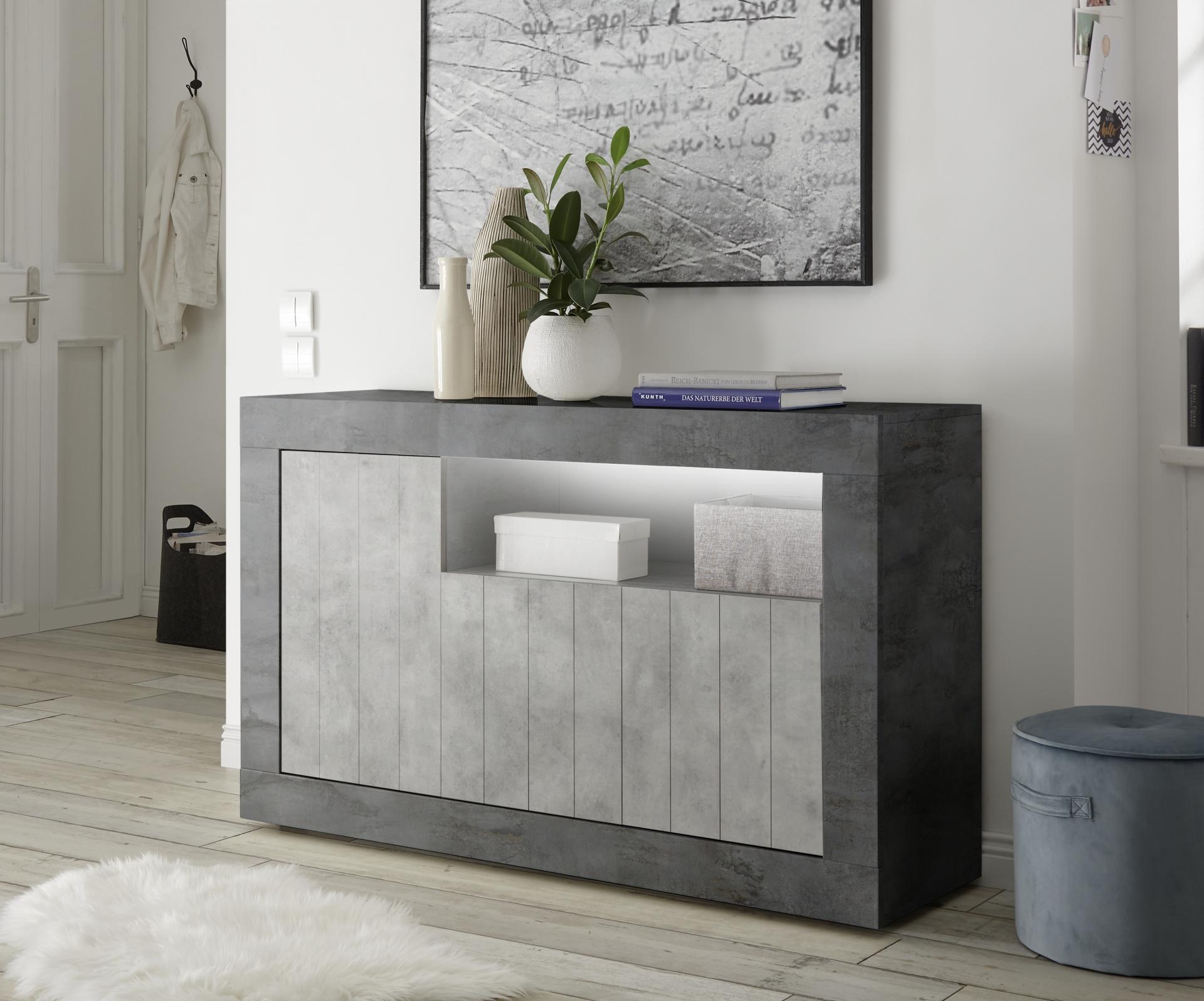 Madia per zona giorno con tre ante e vano a giorno design moderno 138x86 ML46 ossido e cemento
