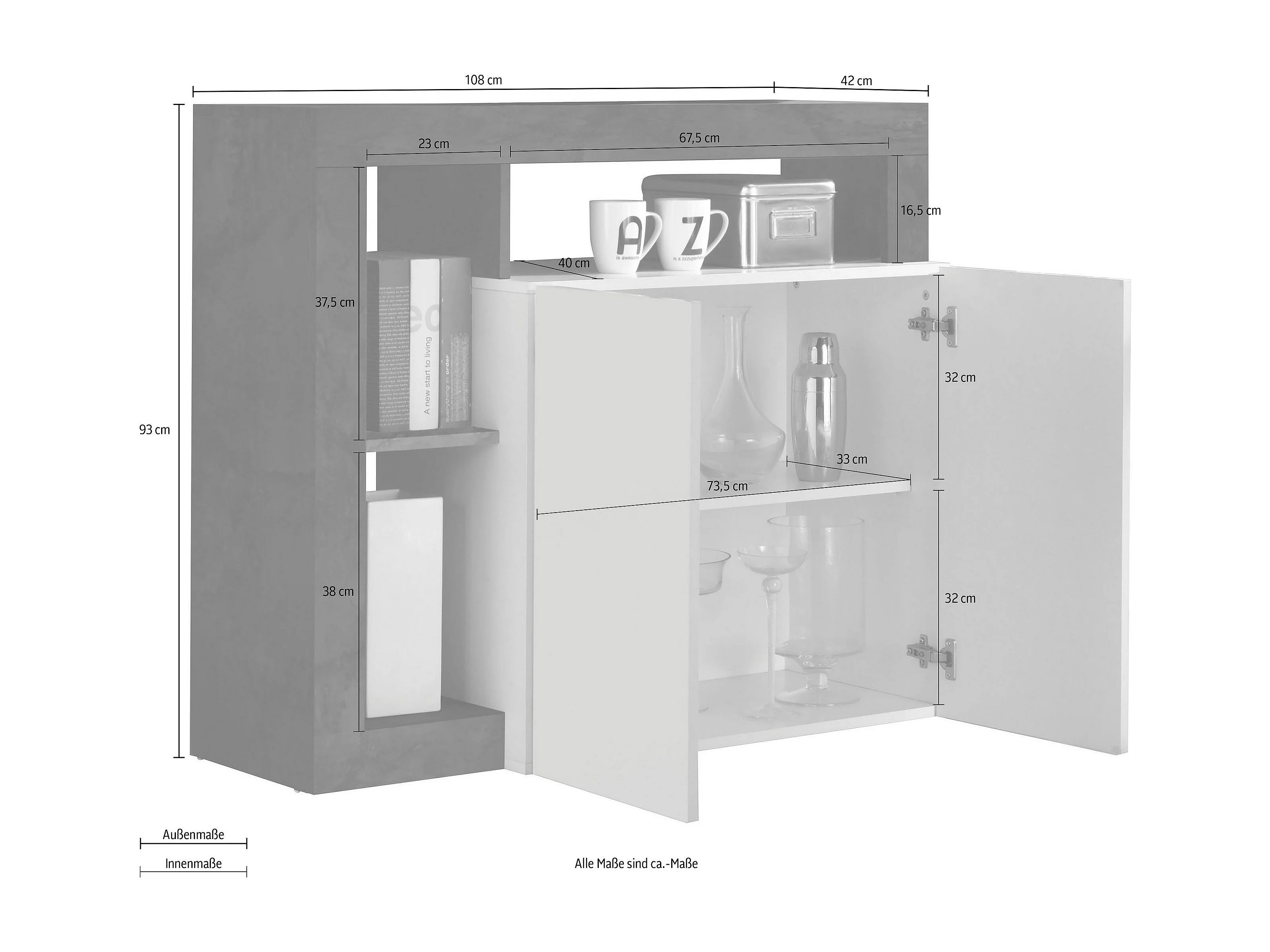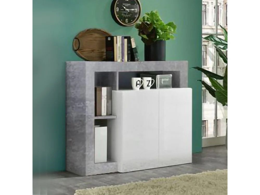 Madia piccola design moderno con due ante battenti e ripiano da living 108x93 ML20 bianco e cemento