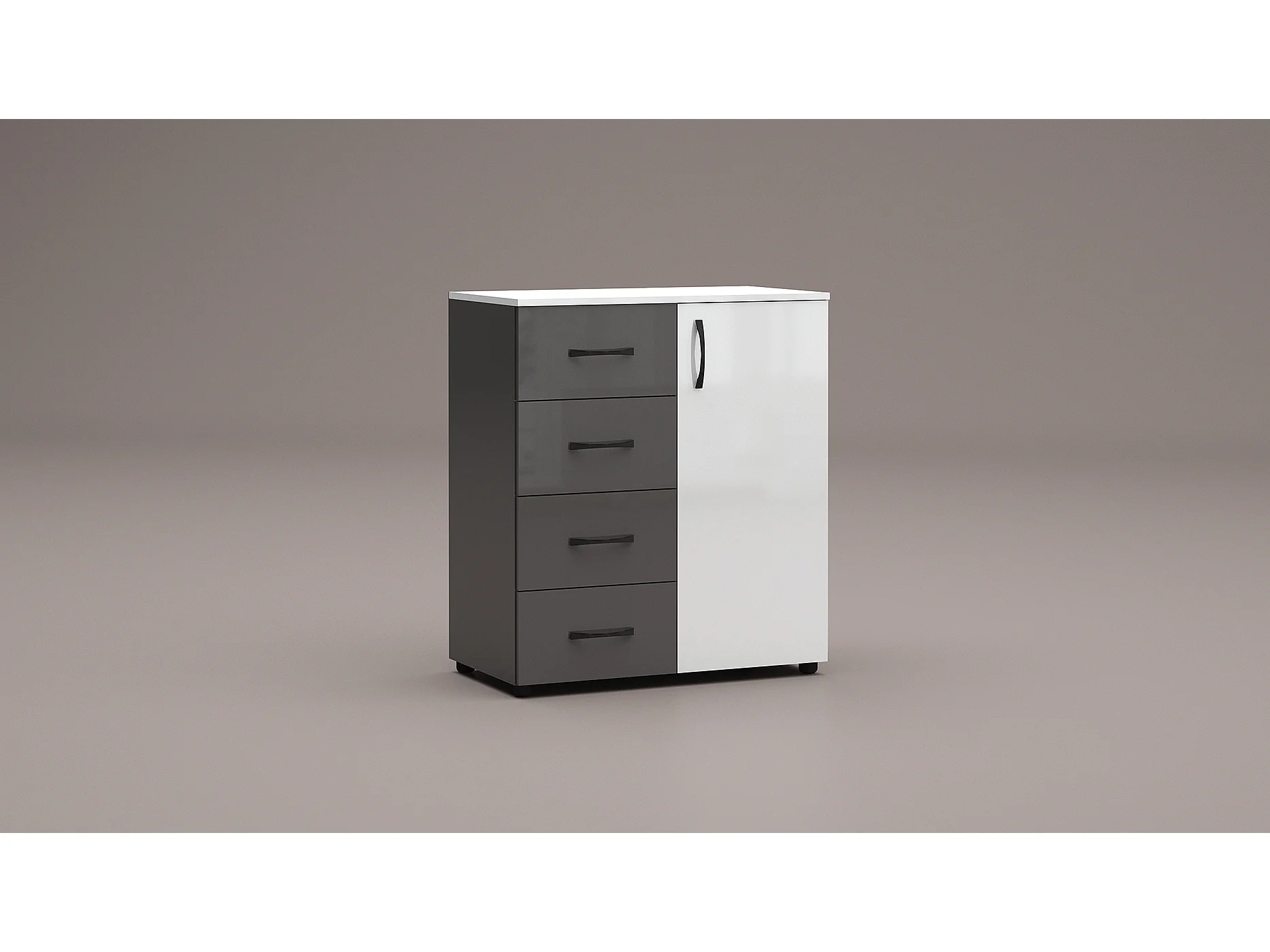 Madia piccola per soggiorno con 4 cassetti e 1 anta, bianco lucido e antracite MG2