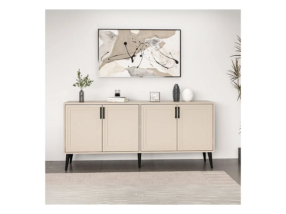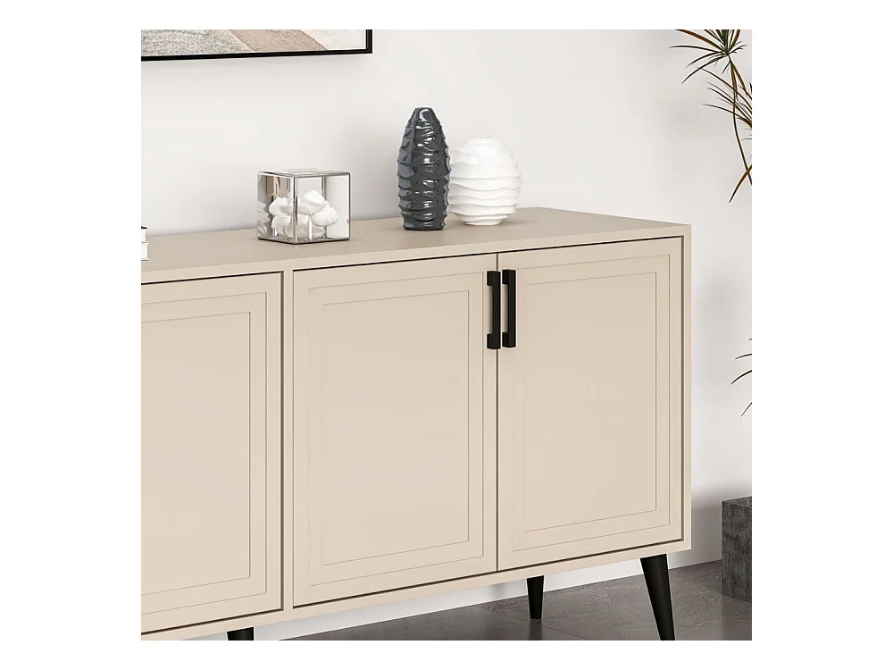 Madia Jana 4 Ante colore cashmere con intagli geometrici maniglie e piedini Oro – Eleganza e Funzionalità per il Tuo Living
