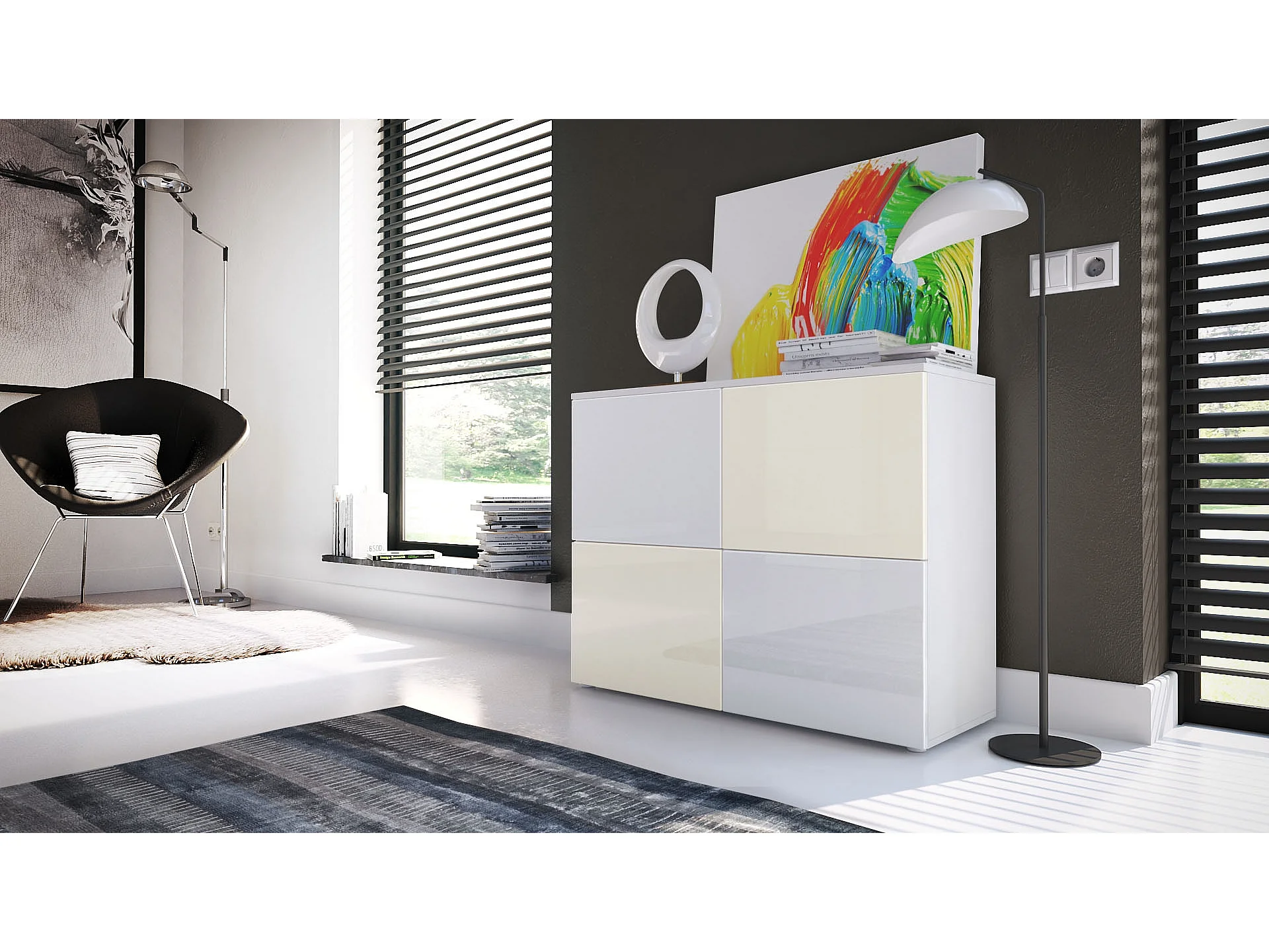 Madia Rova, Mobile con 4 ante, Bianco opaco/Bianco lucido/Crema lucido (92 x 72 x 35 cm)