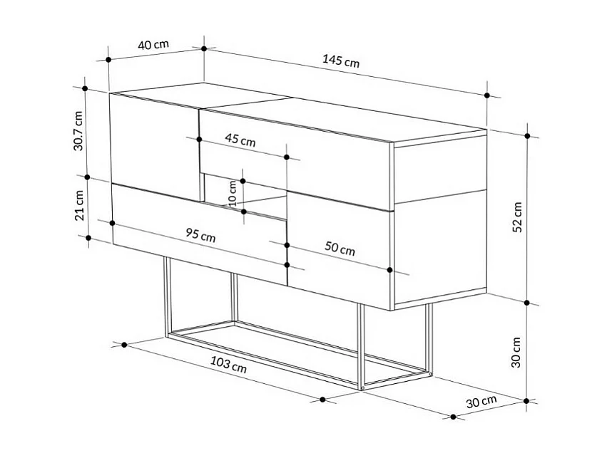 Madia rovere e antracite 2 ante e 2 cassetti Eros 145x40x82h