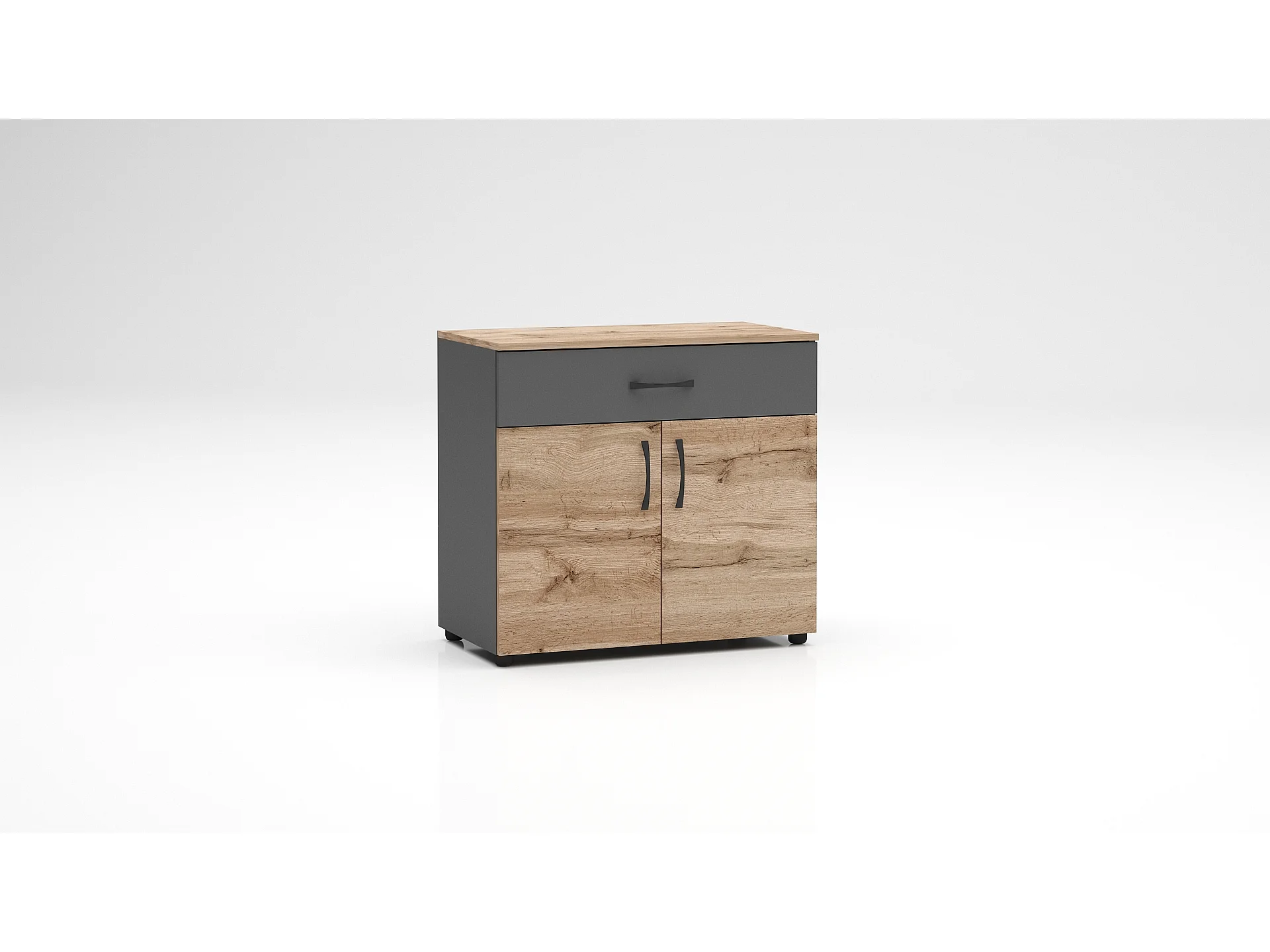 Madia piccola per soggiorno con 4 cassetti e 1 anta, rovere e antracite MG2