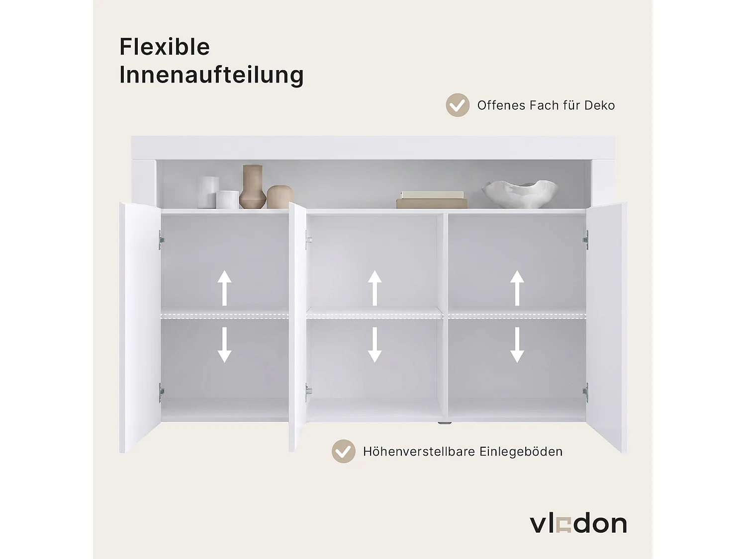 Madia Valencia, mobile a 3 ante e 1 scomparto aperto, nero opaco/beige lucido/beige lucido (155 x 92 x 40 cm)