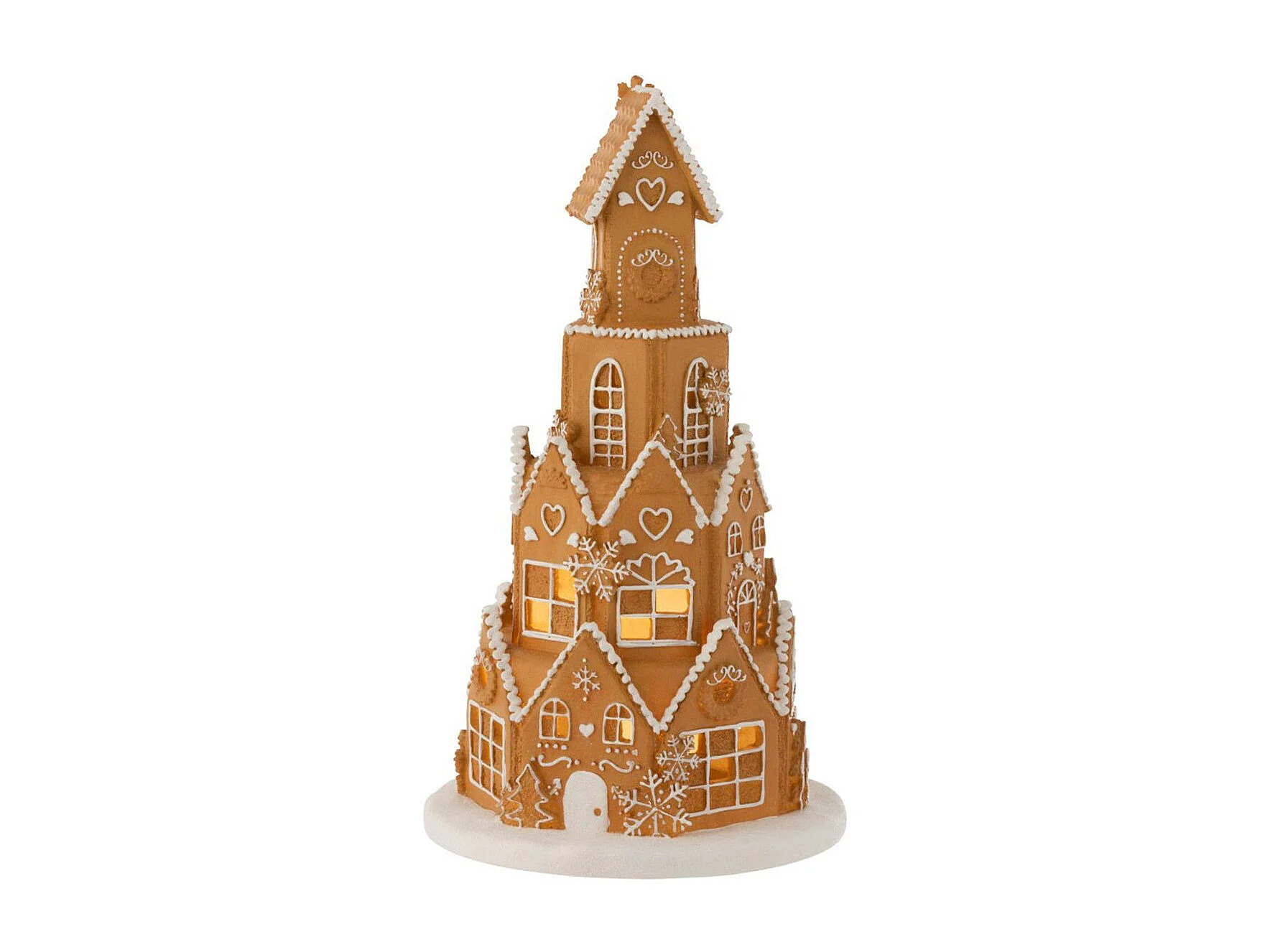 Casa torre di pan di zenzero con LED in resina marrone 26x26x47cm