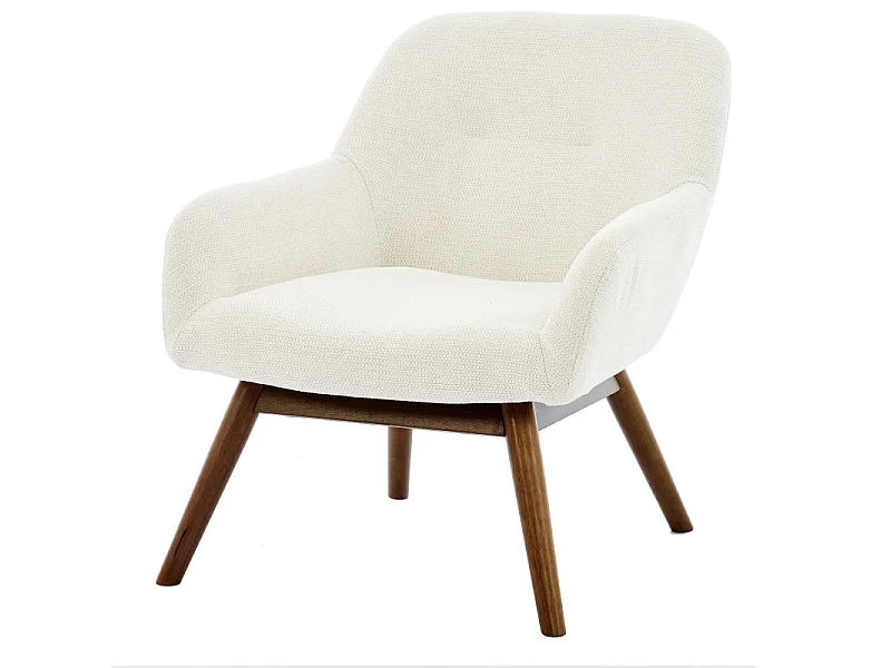 ZACK-Poltrona in tessuto Curly Ecru e legno naturale