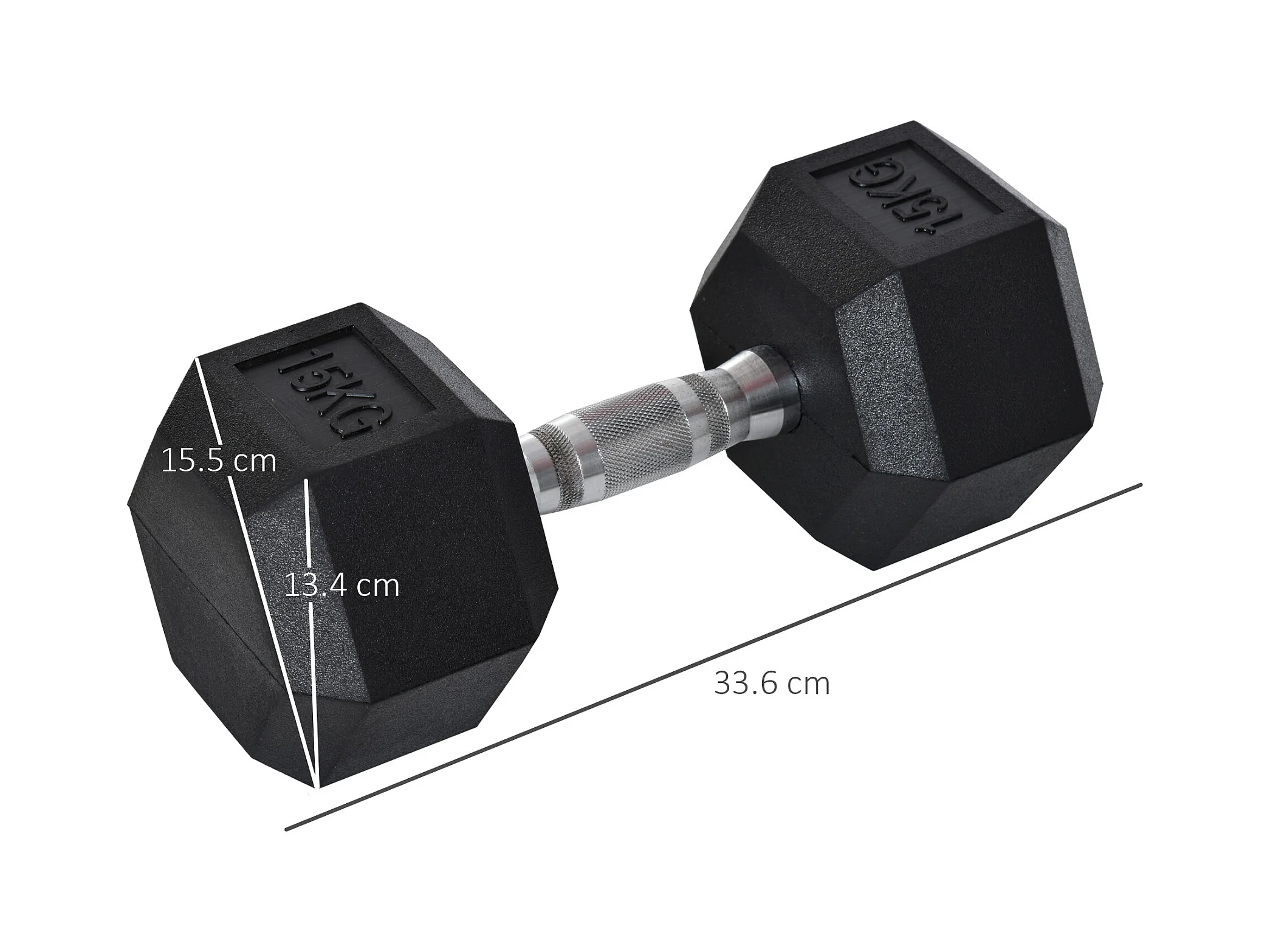 Manubrio 15 kg esagonale in acciaio e gomma nero
