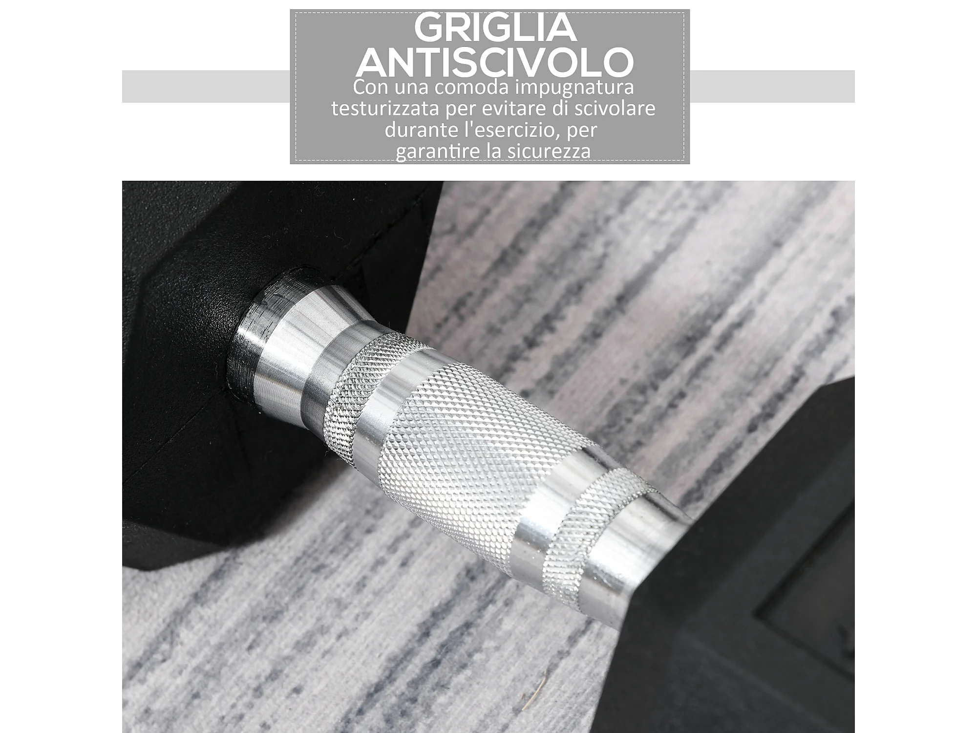 Manubrio esagonale da 20kg in acciaio e gomma nero