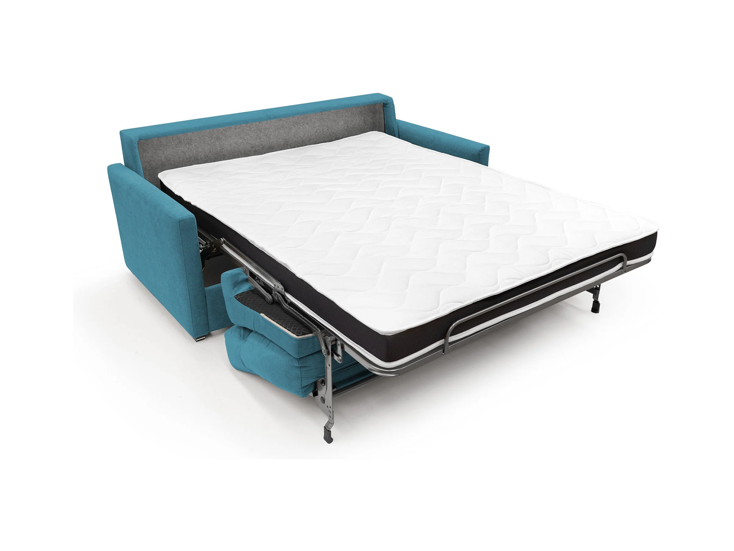 Margot Divano letto matrimoniale con schienale morbido alto in tessuto T02 196 cm (mat. 160x197) azzurro