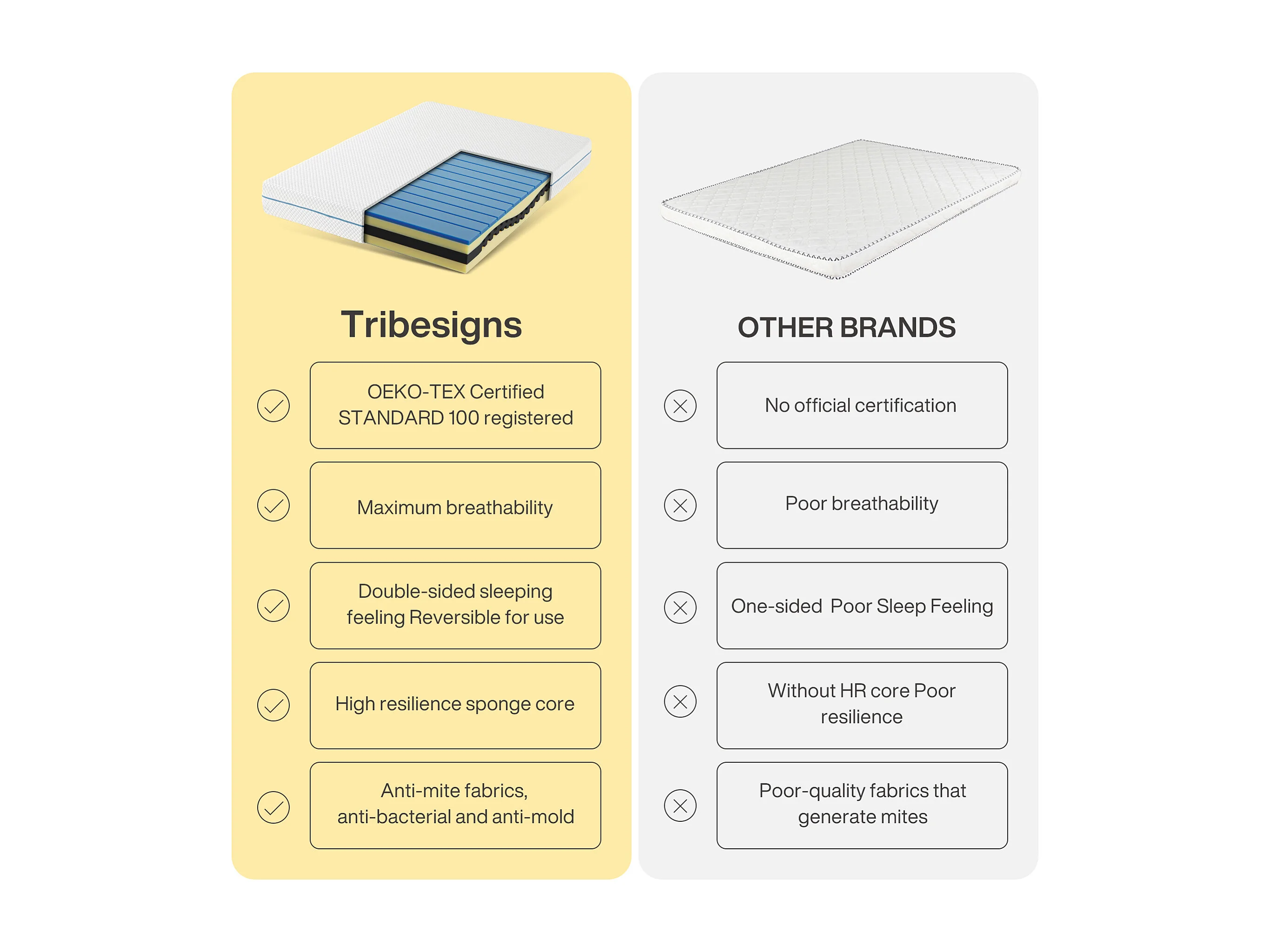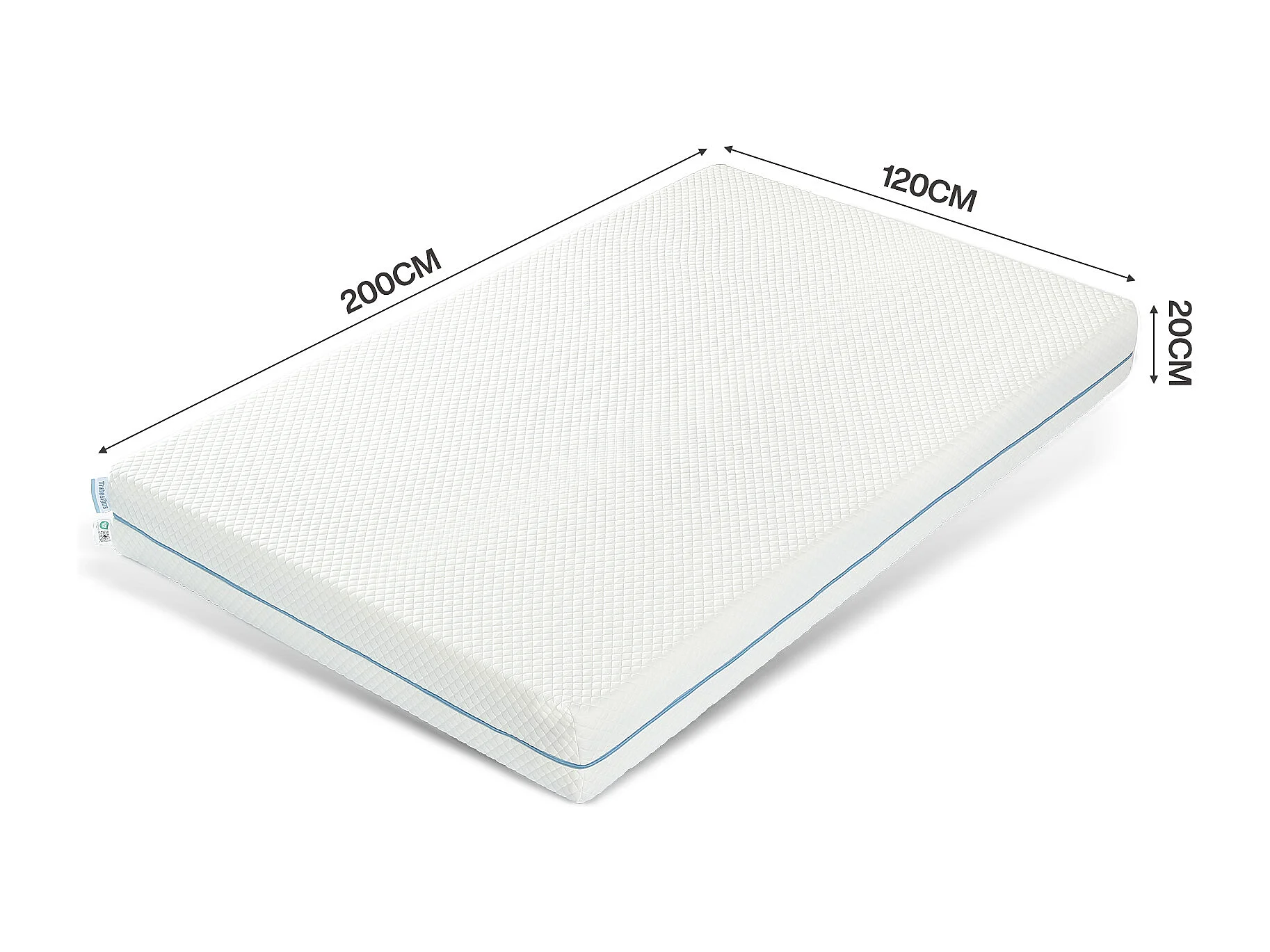 Materasso certificato Oeko-Tex®, 120x200 cm, spessore 20 cm, memory foam, 7 zone, rigidità media H3, reversibile con due lati utilizzabili