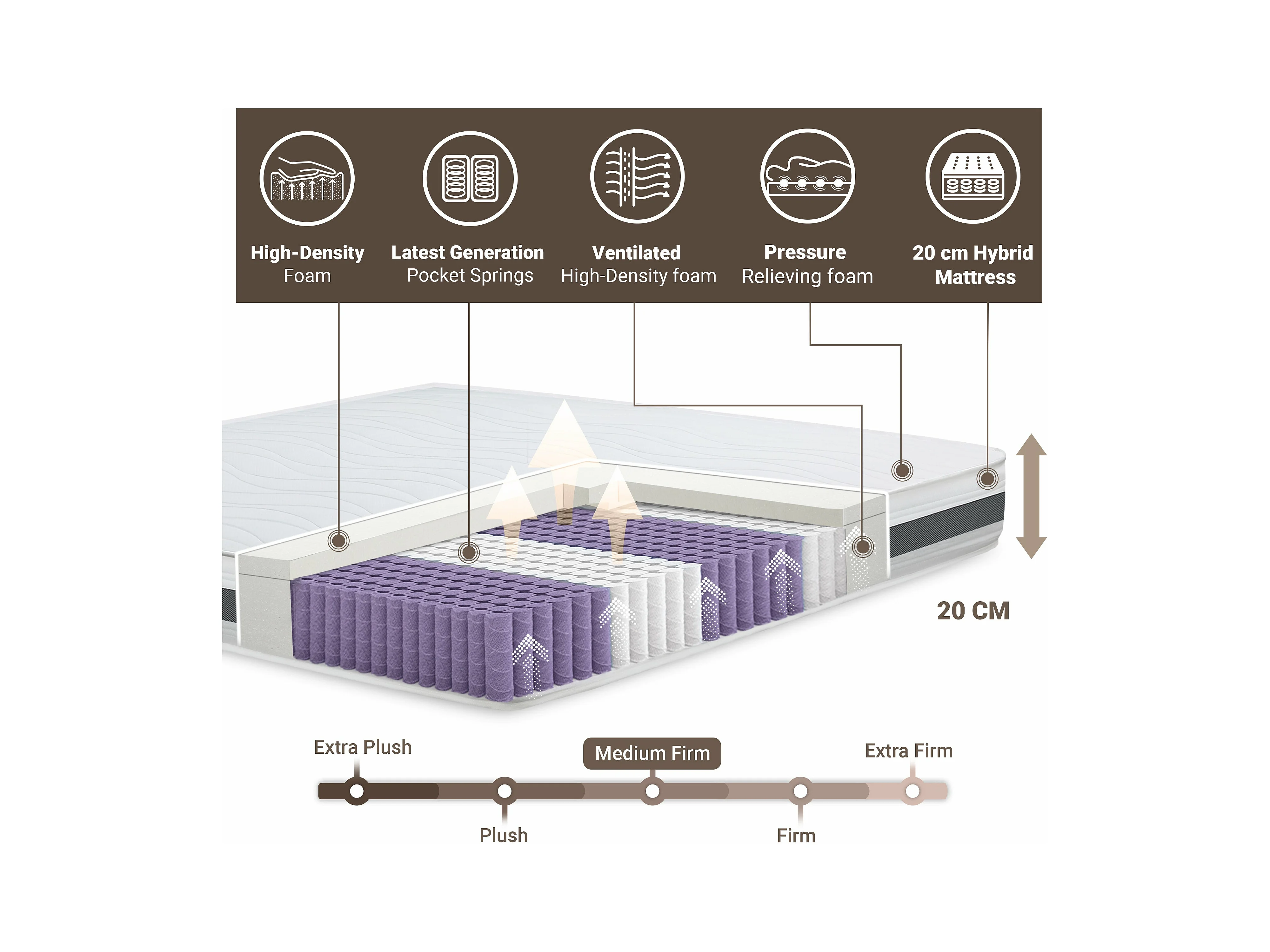 Materasso 80 x 200 Molle Insacchettate e Memory | Altezza 20 cm