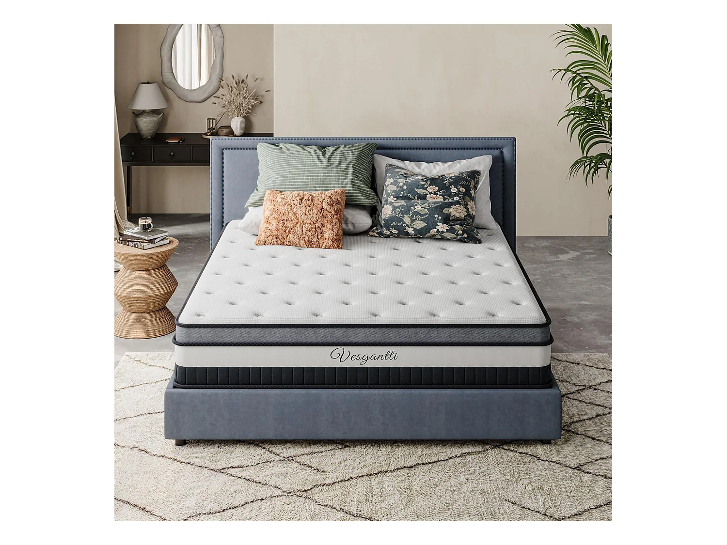 Materasso Vesgantti Boxtop 90x190cm, 26cm di spessore, materasso ibrido di lusso, molle insacchettate e memory foam, 7 zone di comfort multistrato
