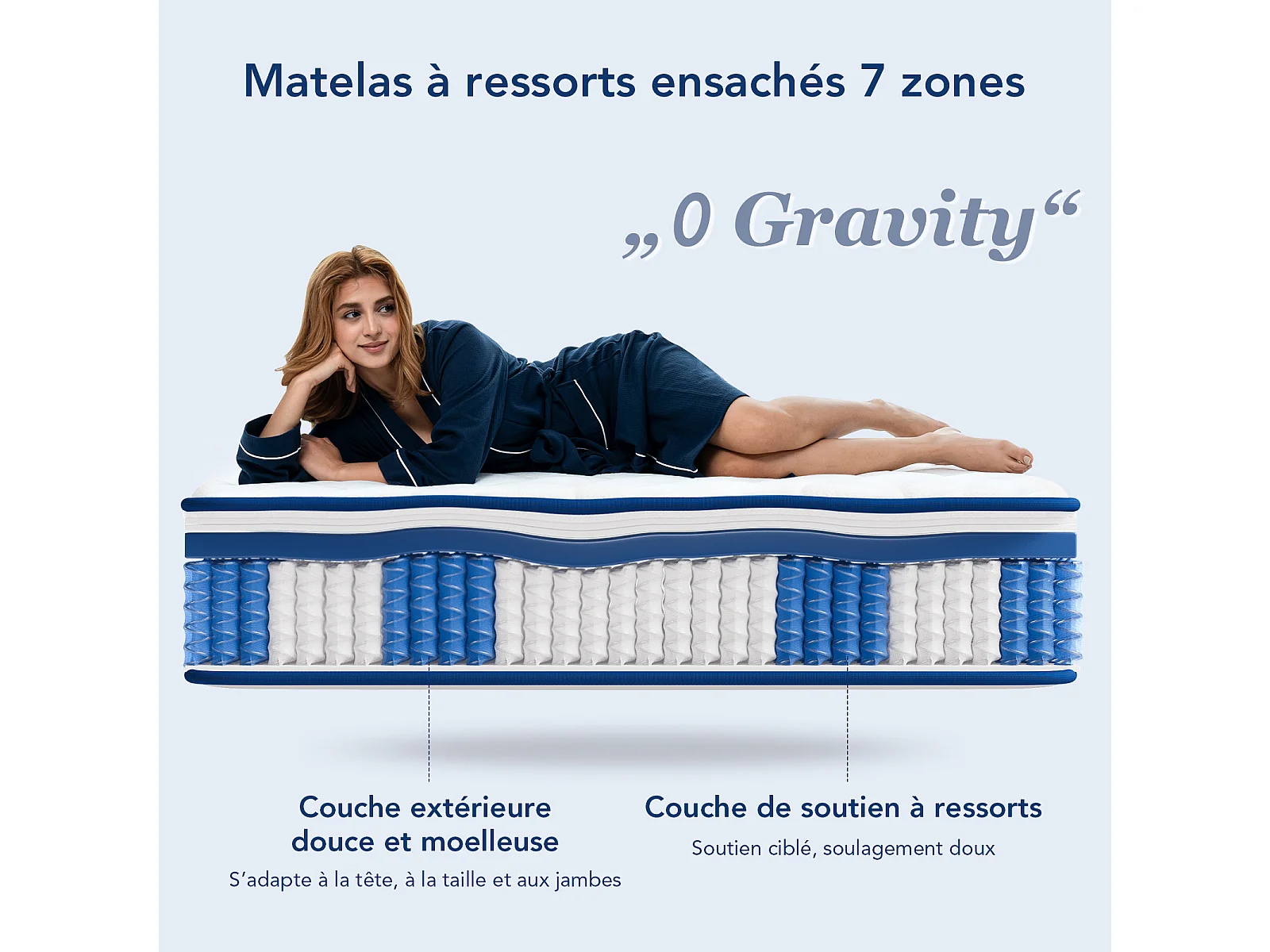 Materasso extra comfort 90x200 cm – spessore 22 cm – 7 zone di comfort – sostegno equilibrato