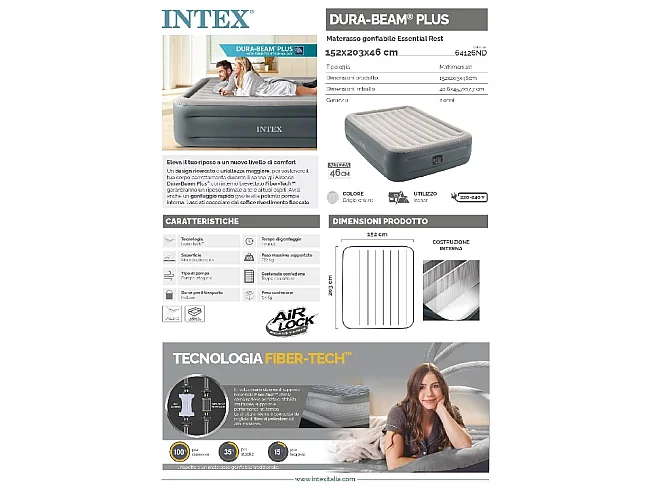 Intex Letto ad Aria Dura-Beam Deluxe Comfort Plush Queen 152x203x46 cm