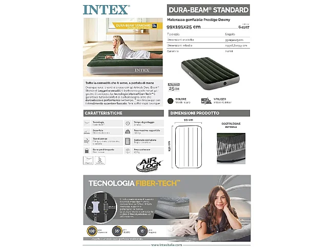 Materasso Gonfiabile Singolo Prestige Downy - Verde - 99 x 191 x 25 cm