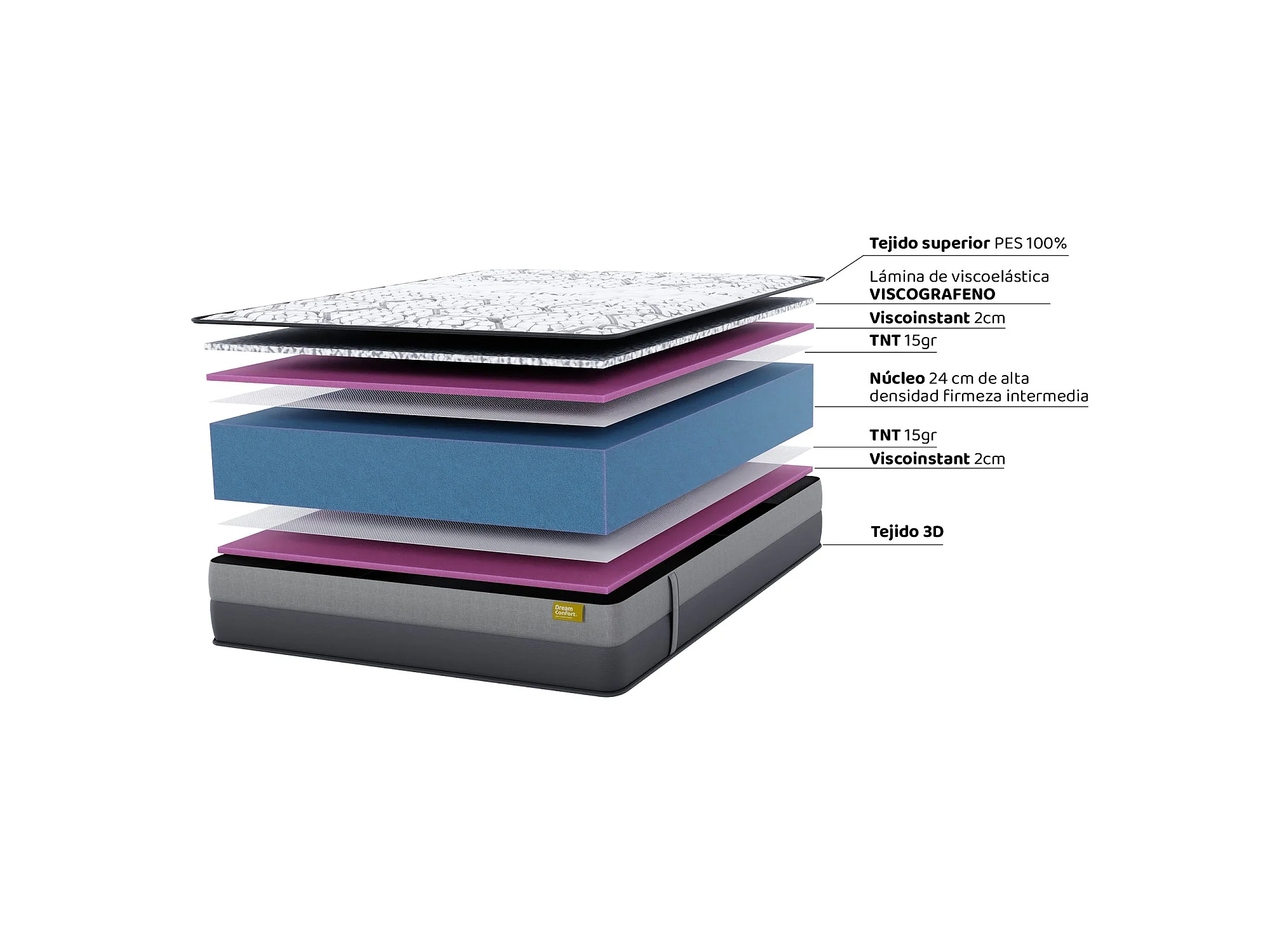 Materasso HR In Memory Foam Grafeno Excellence Senator 150x200 28 cm Doppia Faccia Indipendenza dei Letti Rigidità Alta Dream Confort