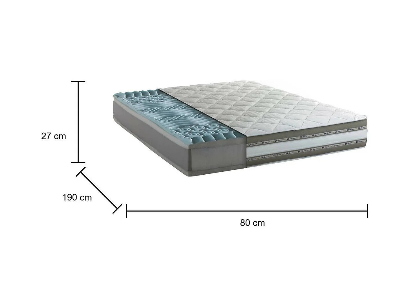 Talamo Italia - Materasso singolo Adrano, Anti acaro e Anallergico, Cm 80x190h27