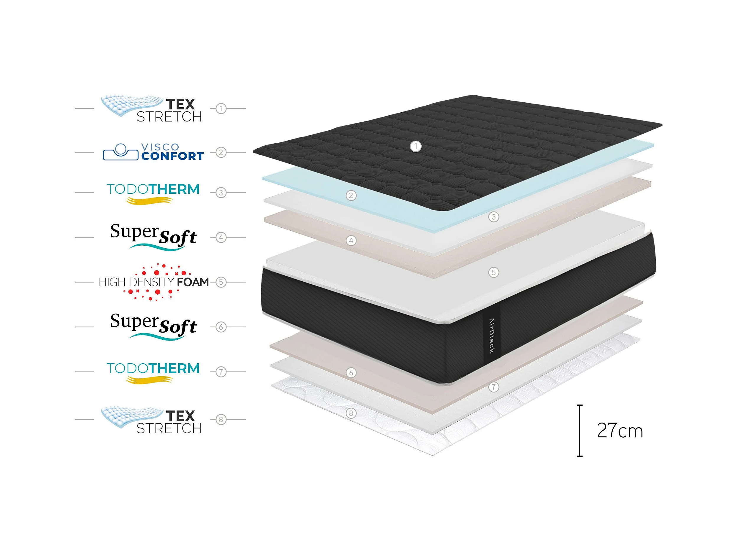 Materasso viscoelastico Air Black 27 cm, 120x200 cm - Moonia