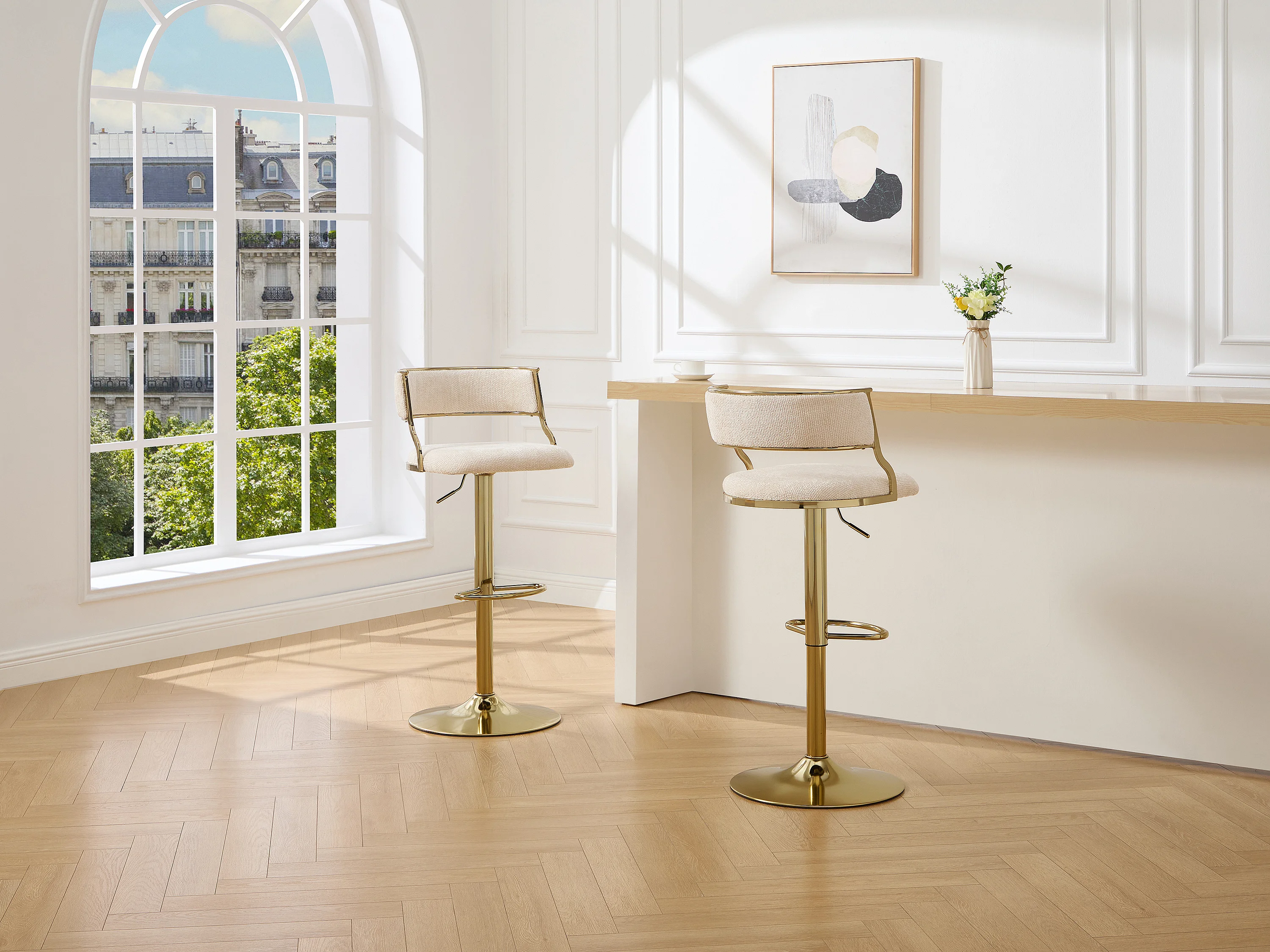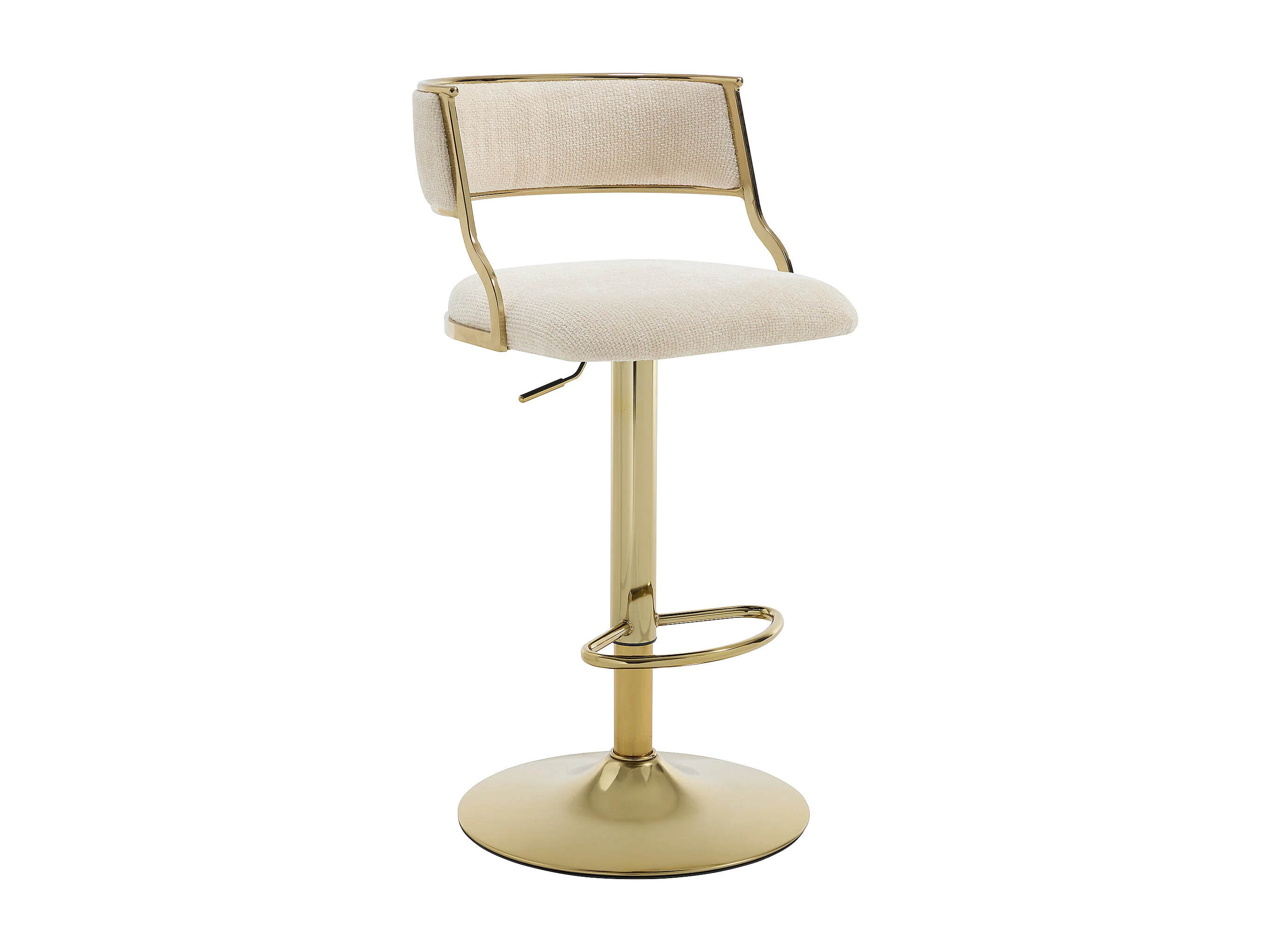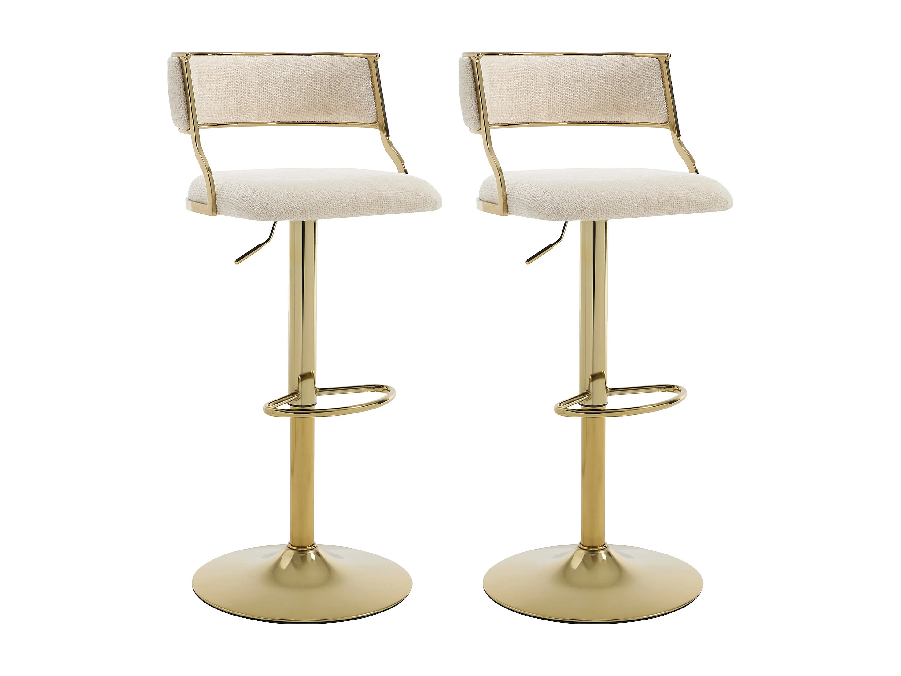 Sgabello da bar in tessuto testurizzato e metallo dorato Altezza regolabile Crema - Lotto di 2 - MAYEMA