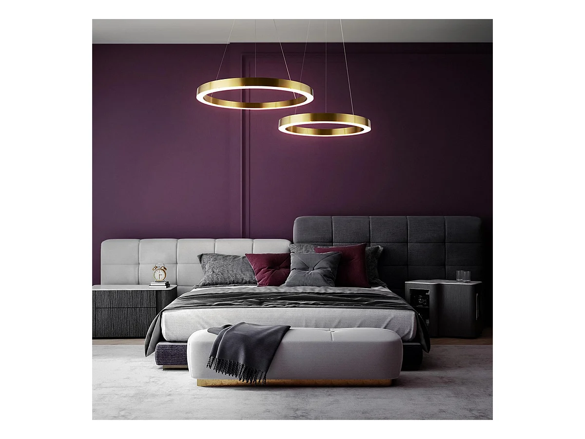 Maytoni Rim Plafoniera moderna a sospensione a LED integrata a 2 luci Twin Ring Ottone, 60cm, 3000K