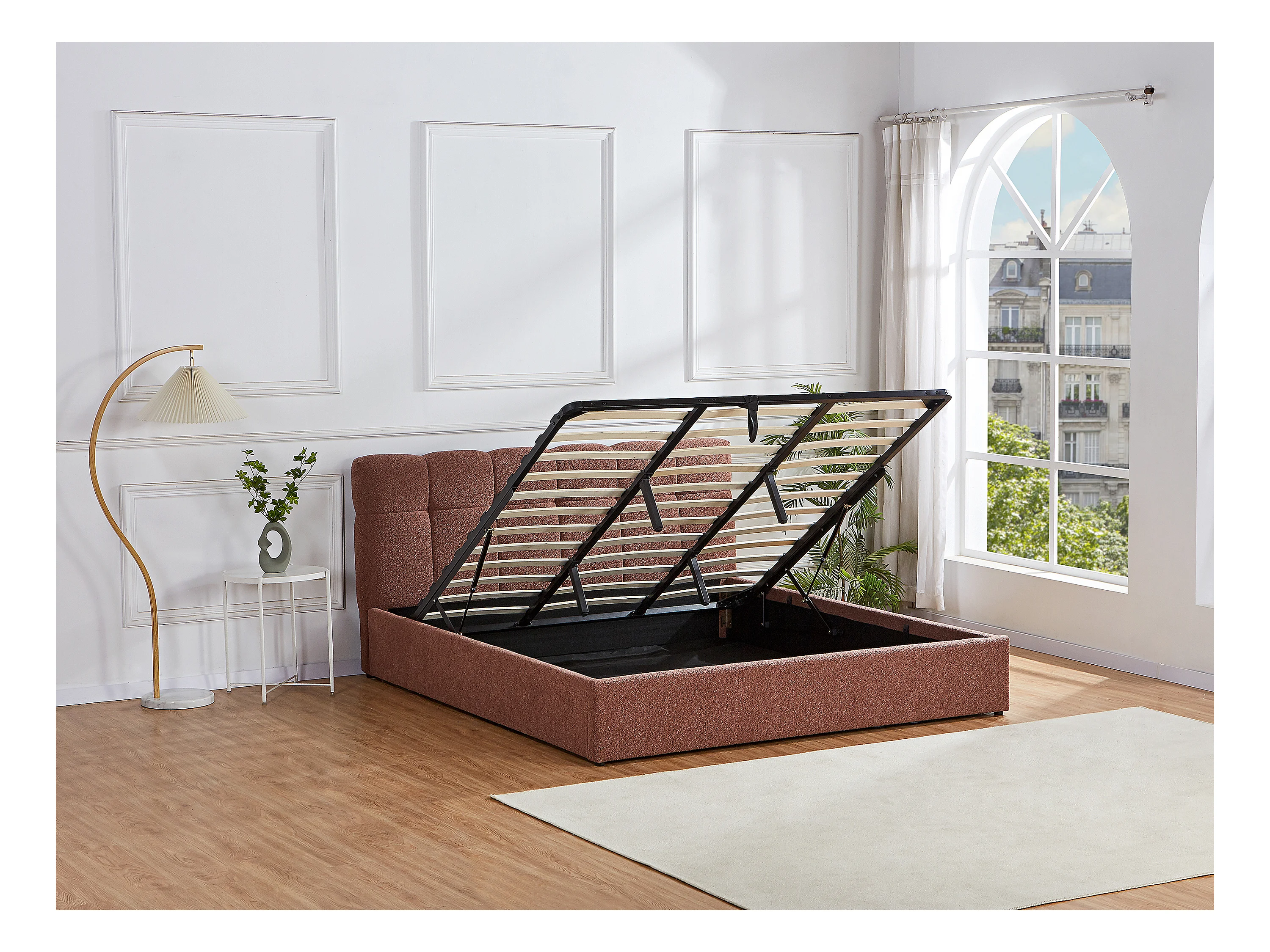 Letto con contenitore 180 x 200 cm - Tessuto bouclette Terracotta + Materasso - MAZIRI
