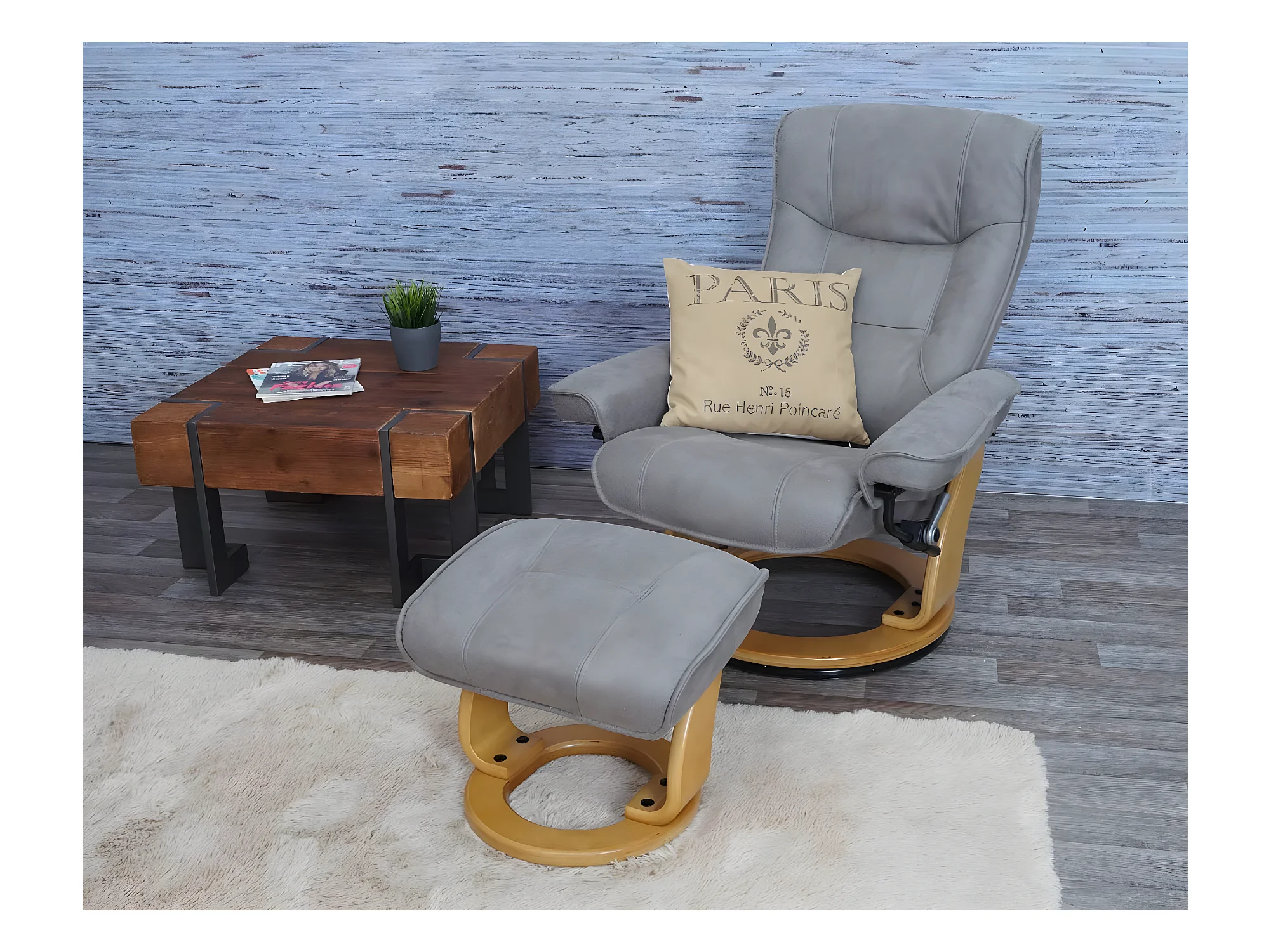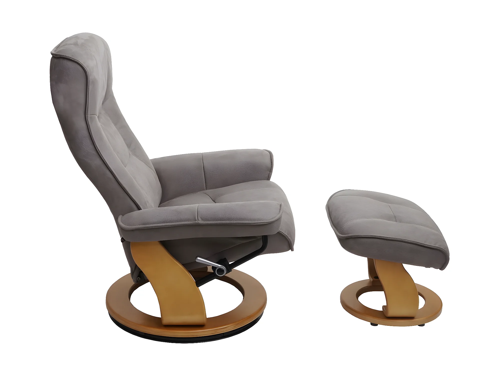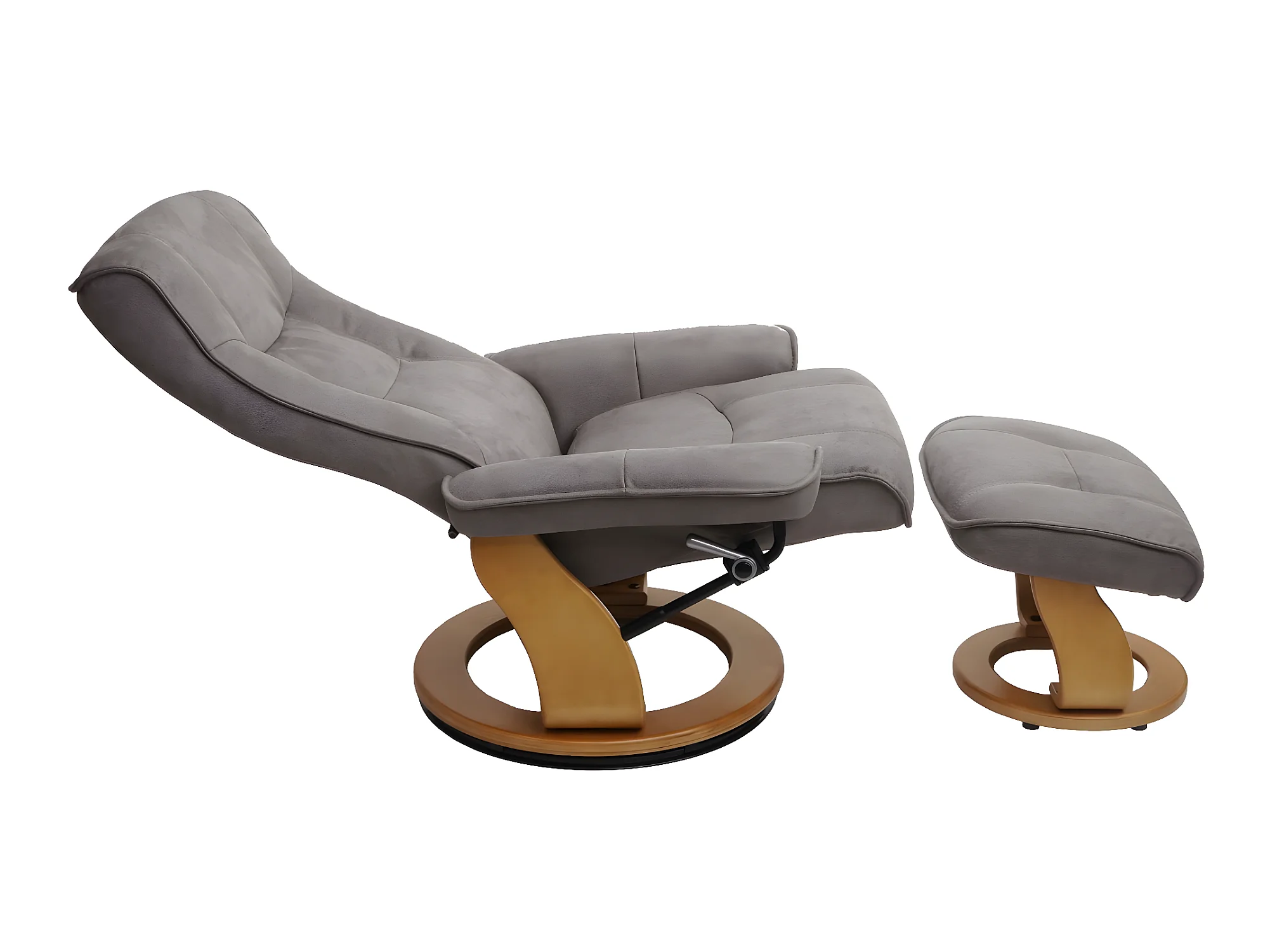 MCA poltrona relax Hamilton tessuto girevole con poggiapiedi legno chiaro grigio chiaro