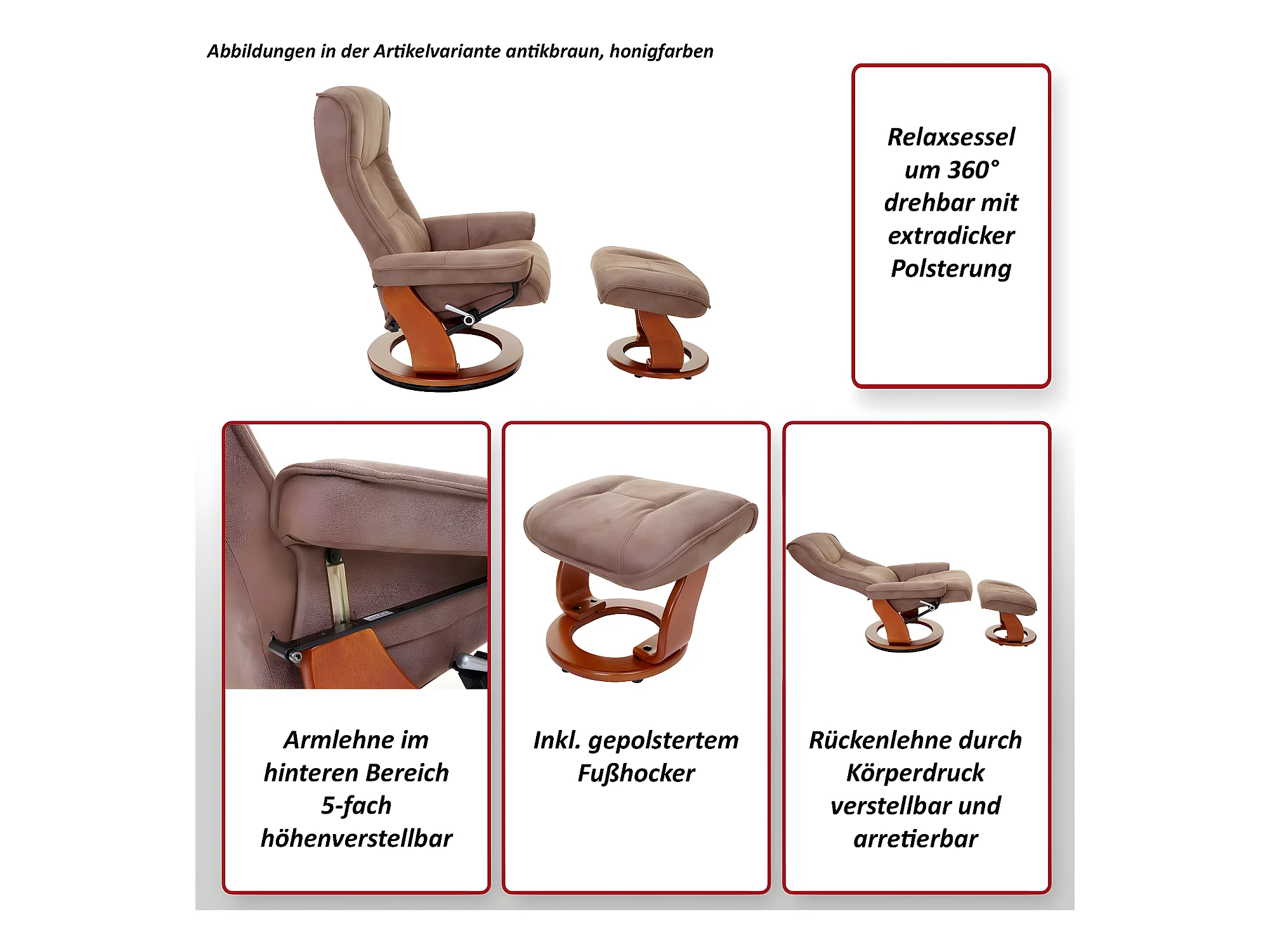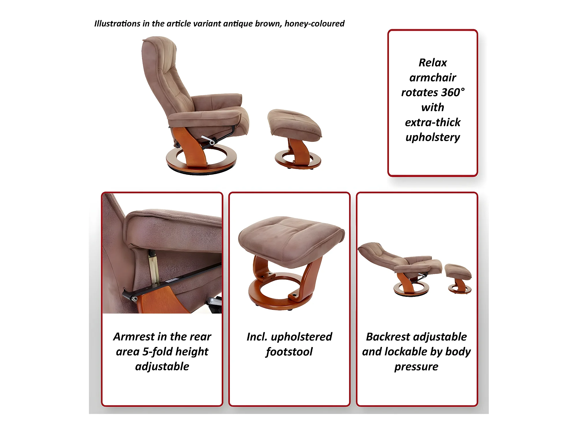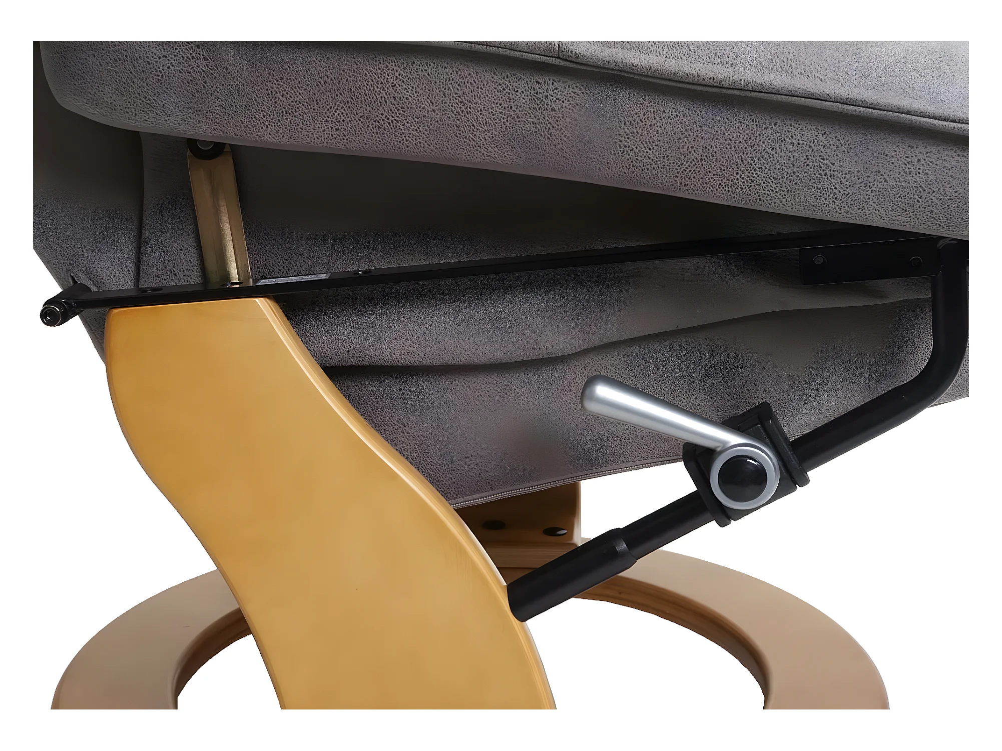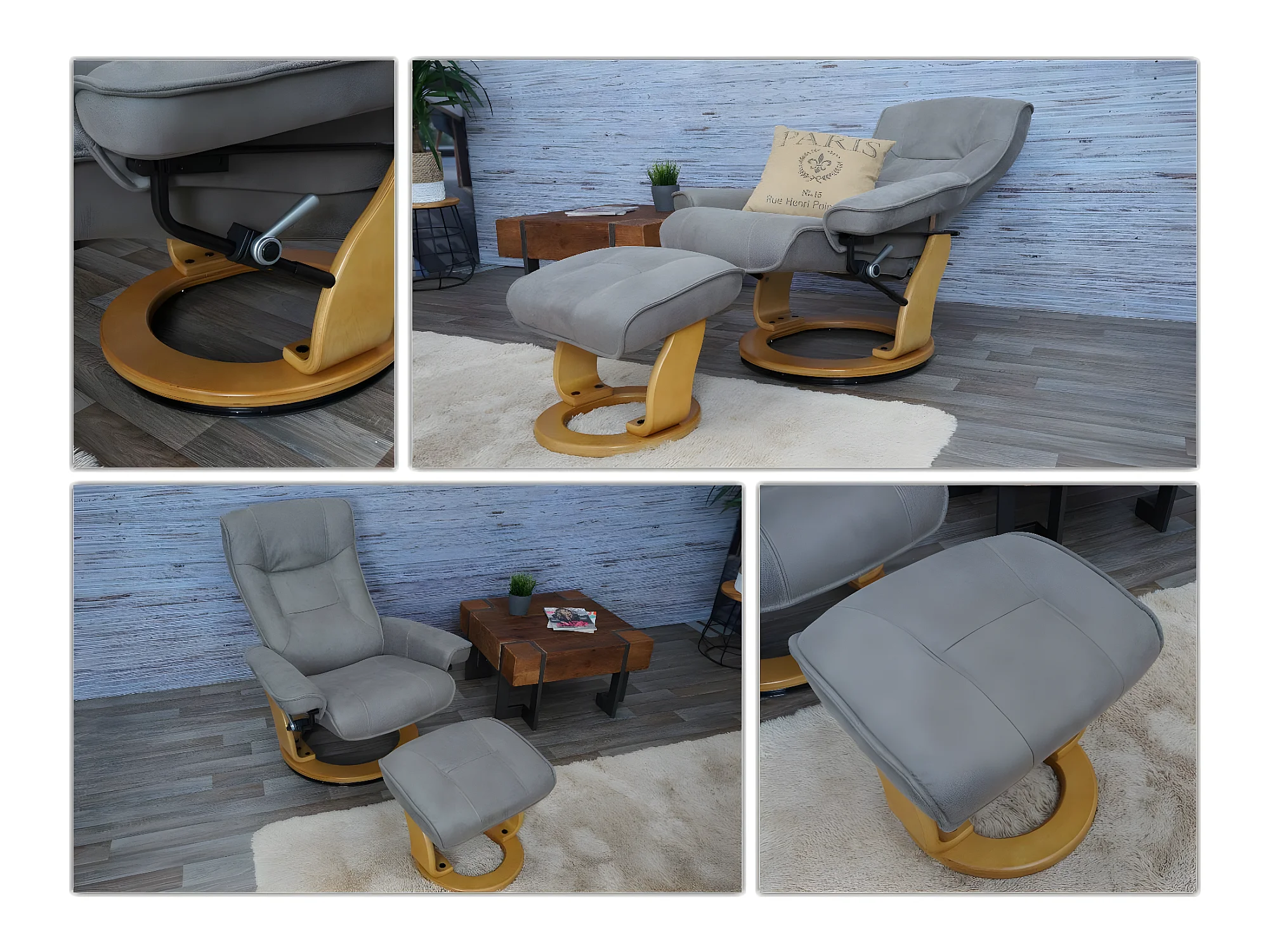 MCA poltrona relax Hamilton tessuto girevole con poggiapiedi legno chiaro grigio chiaro