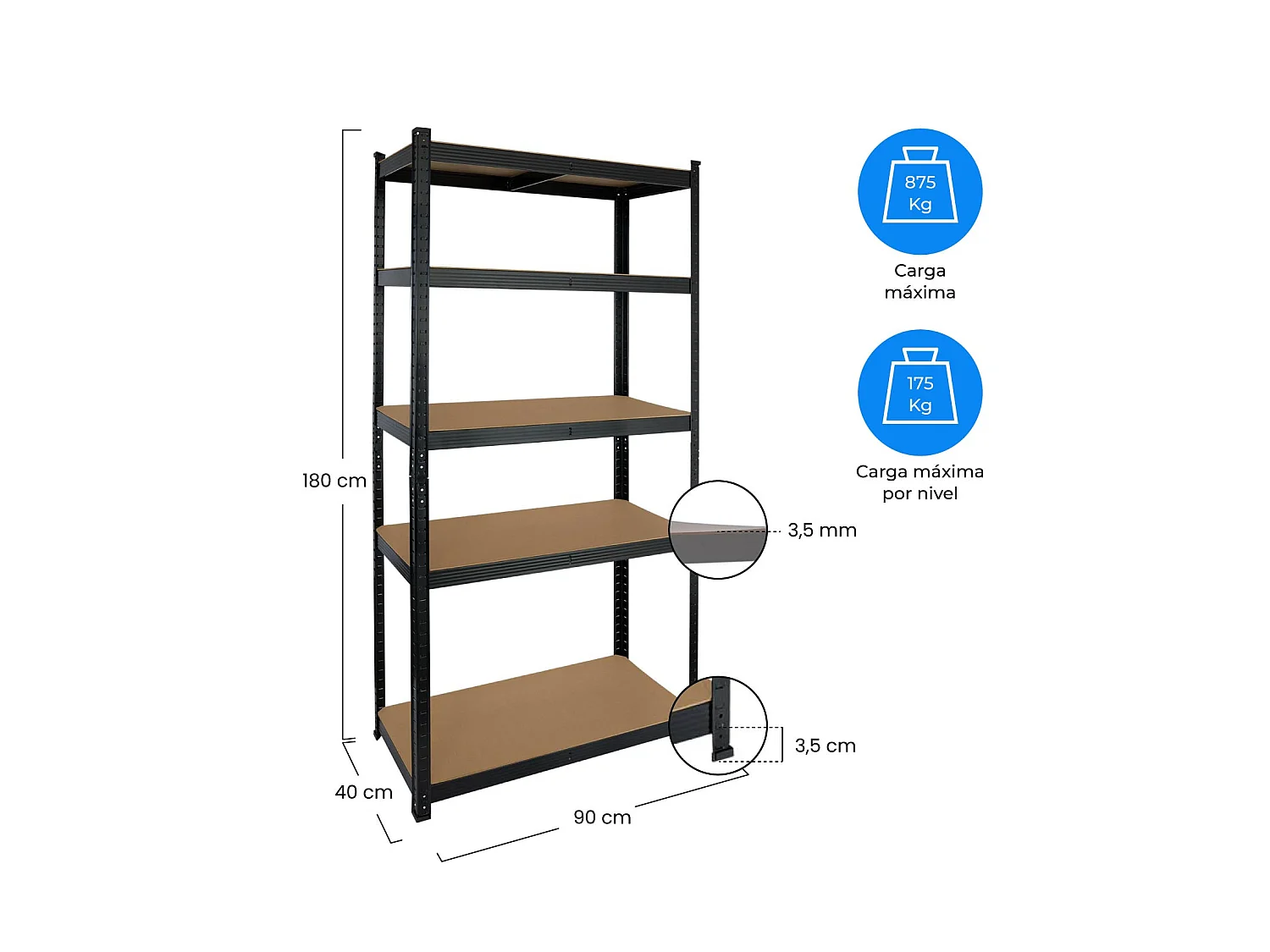 MegaPack 10 Scaffali modulari neri con 5 ripiani regolabili 180x90x40cm 875Kg 7house