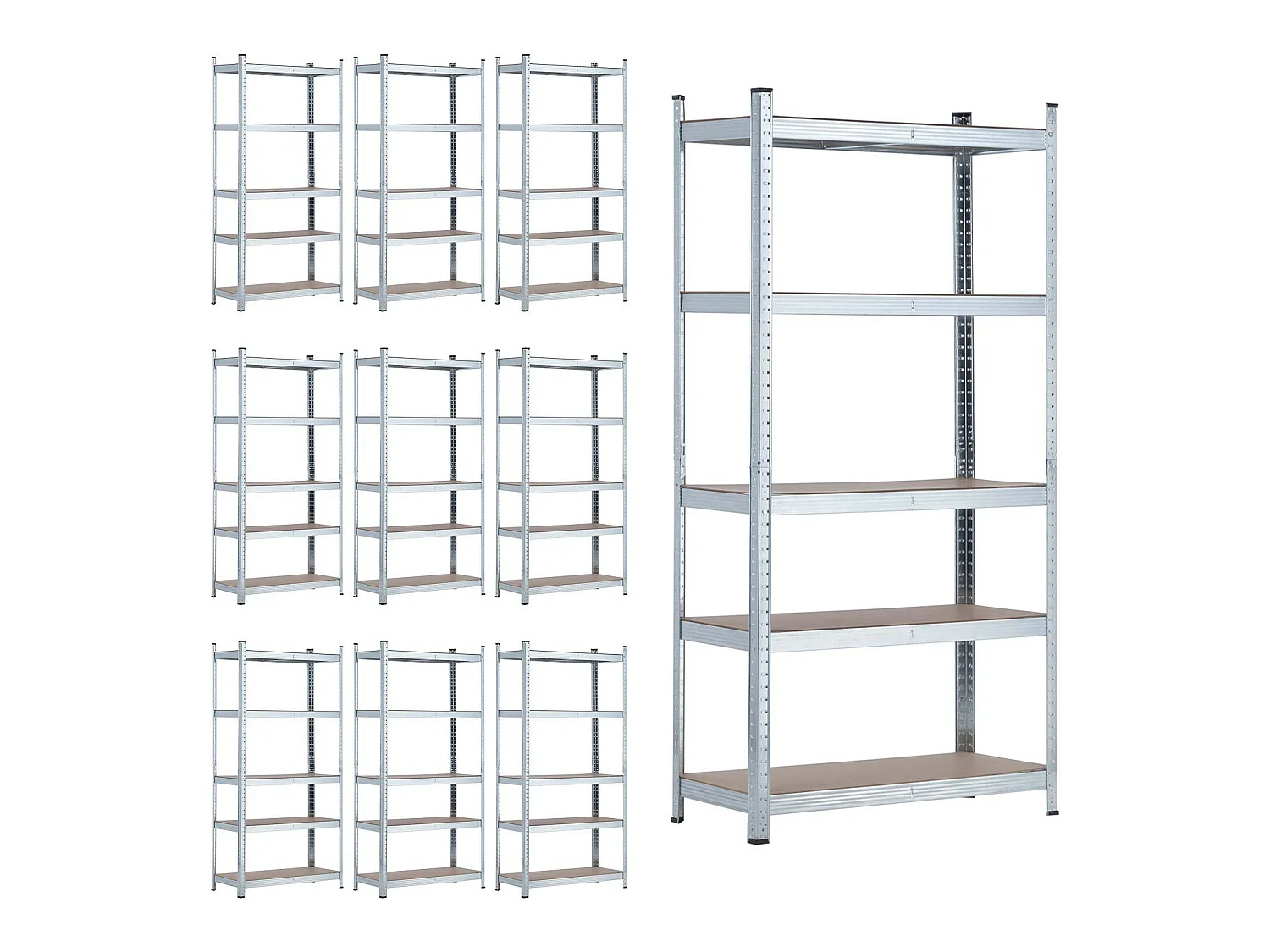 MegaPack 10 scaffali modulari zincati con 5 ripiani regolabili 180x90x40cm 875Kg 7house