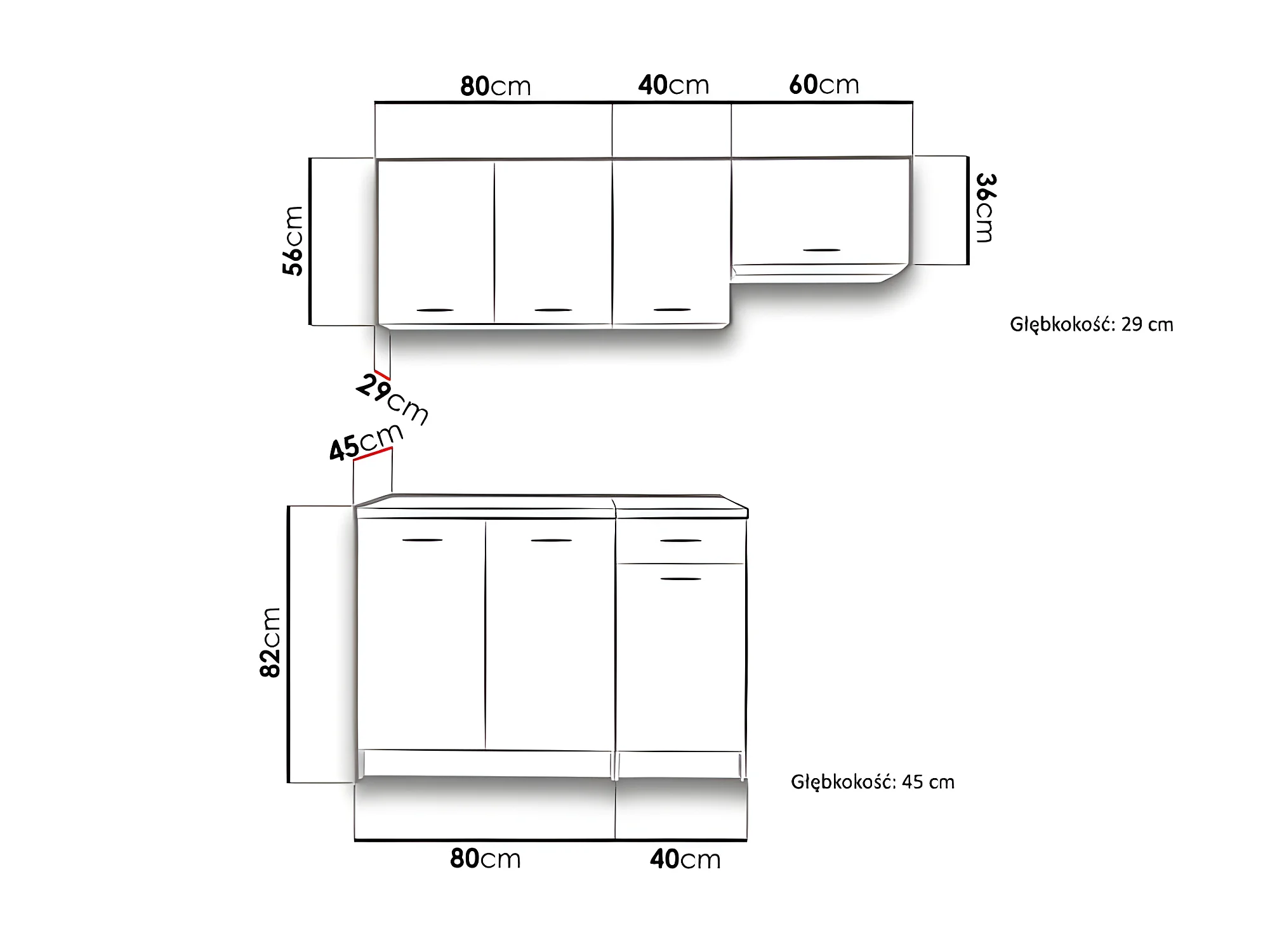 MELY Mini | Cucina Completa Modulare + Lineare L 180cm 5 pz | Piano di lavoro INCLUSO | Set di mobili da cucina per angolo cottura