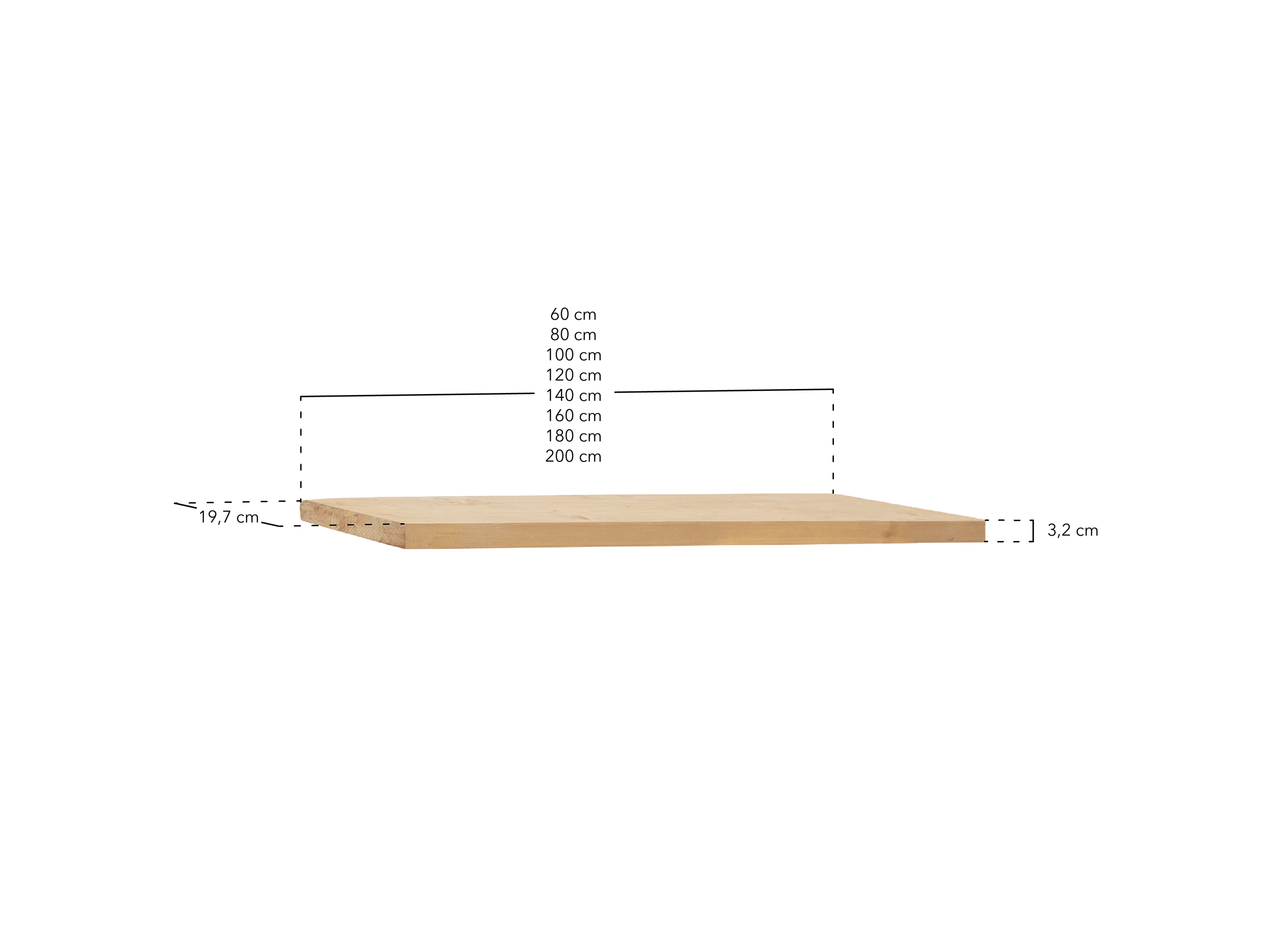 Menso in legno massello in tono marrone chiaro 200x3,2x20cm - MELVA - DECOWOOD