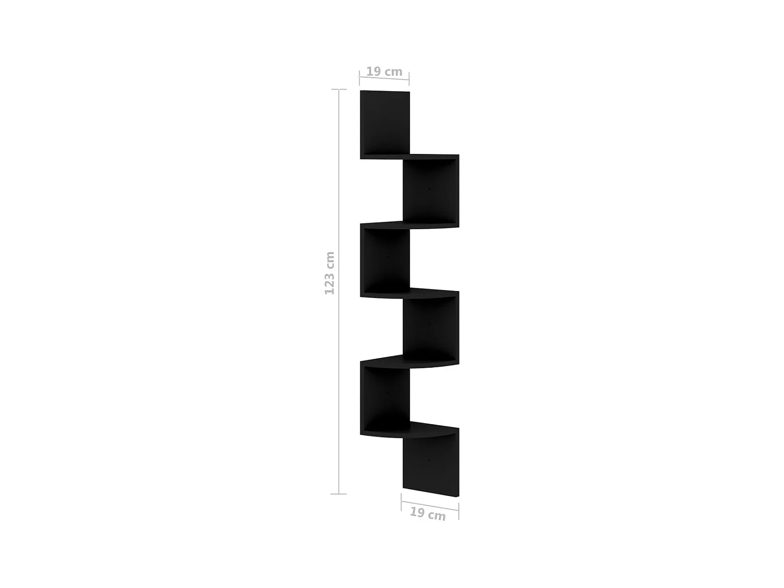 Mensola angolare da parete nera 19x19x123 cm in legno ingegnerizzato