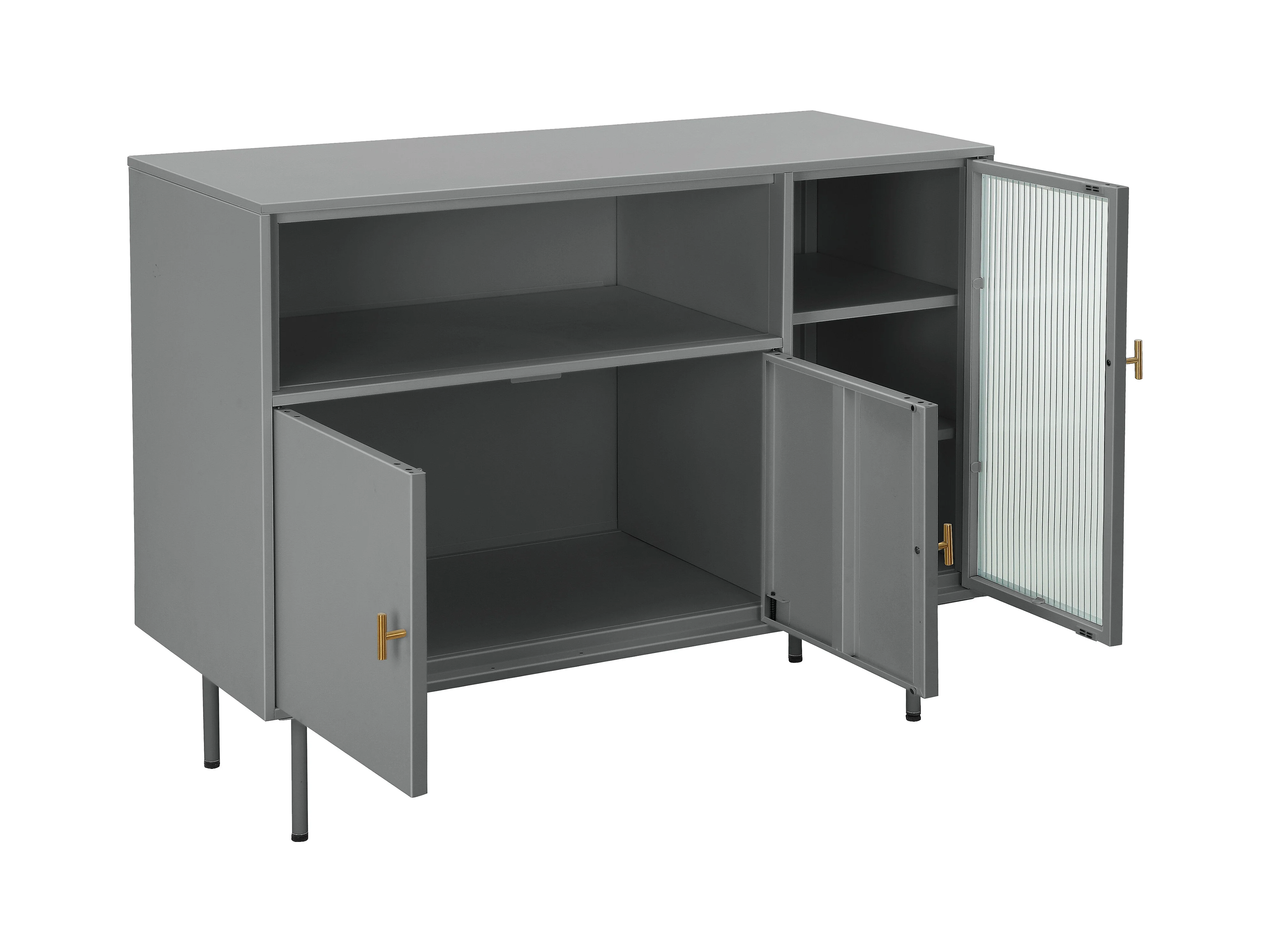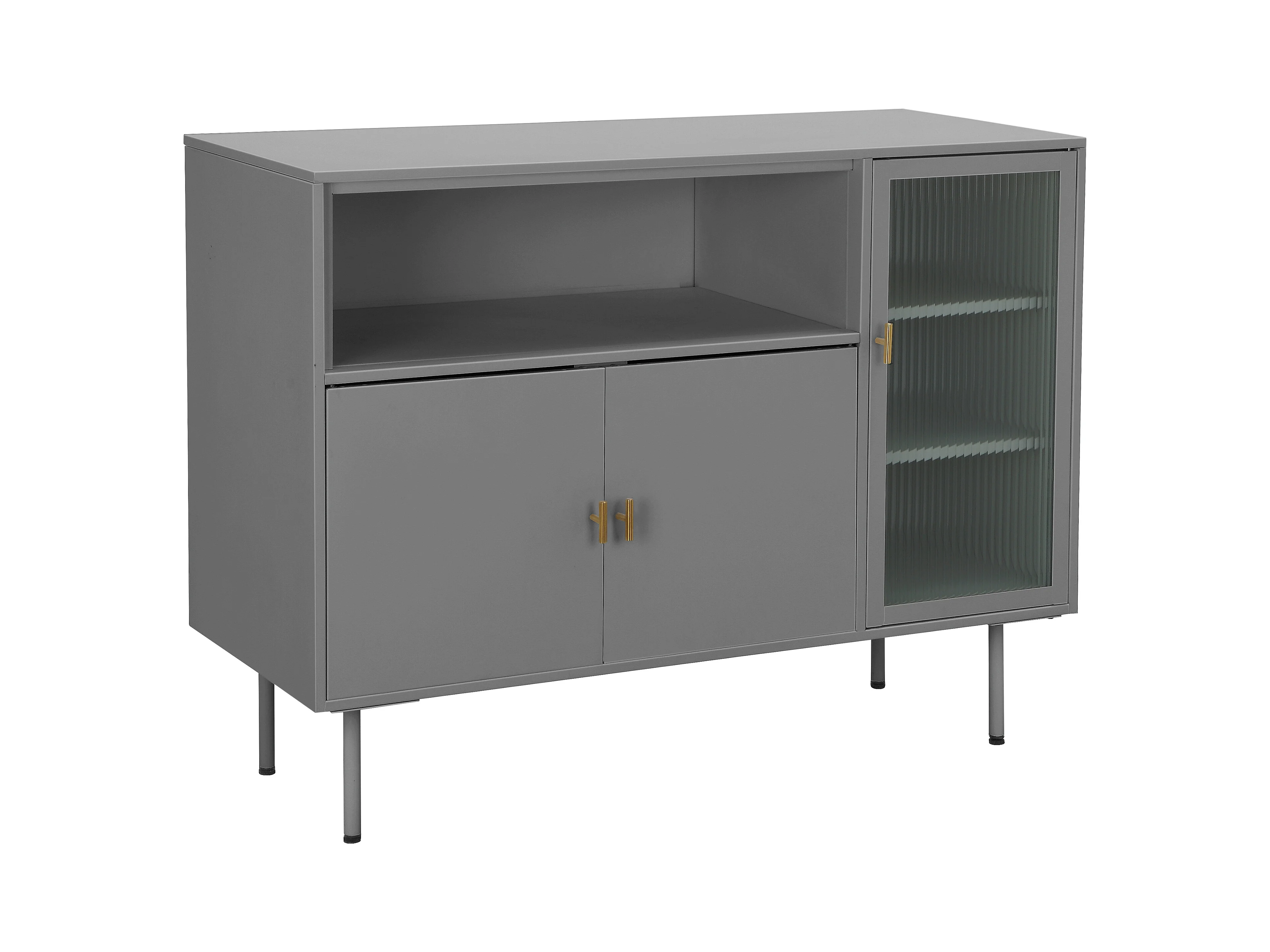 Credenza minimalista grigia 140×38,5×82,5 cm con design unico ed eleganti ante – Mobile indipendente per sala da pranzo e soggiorno