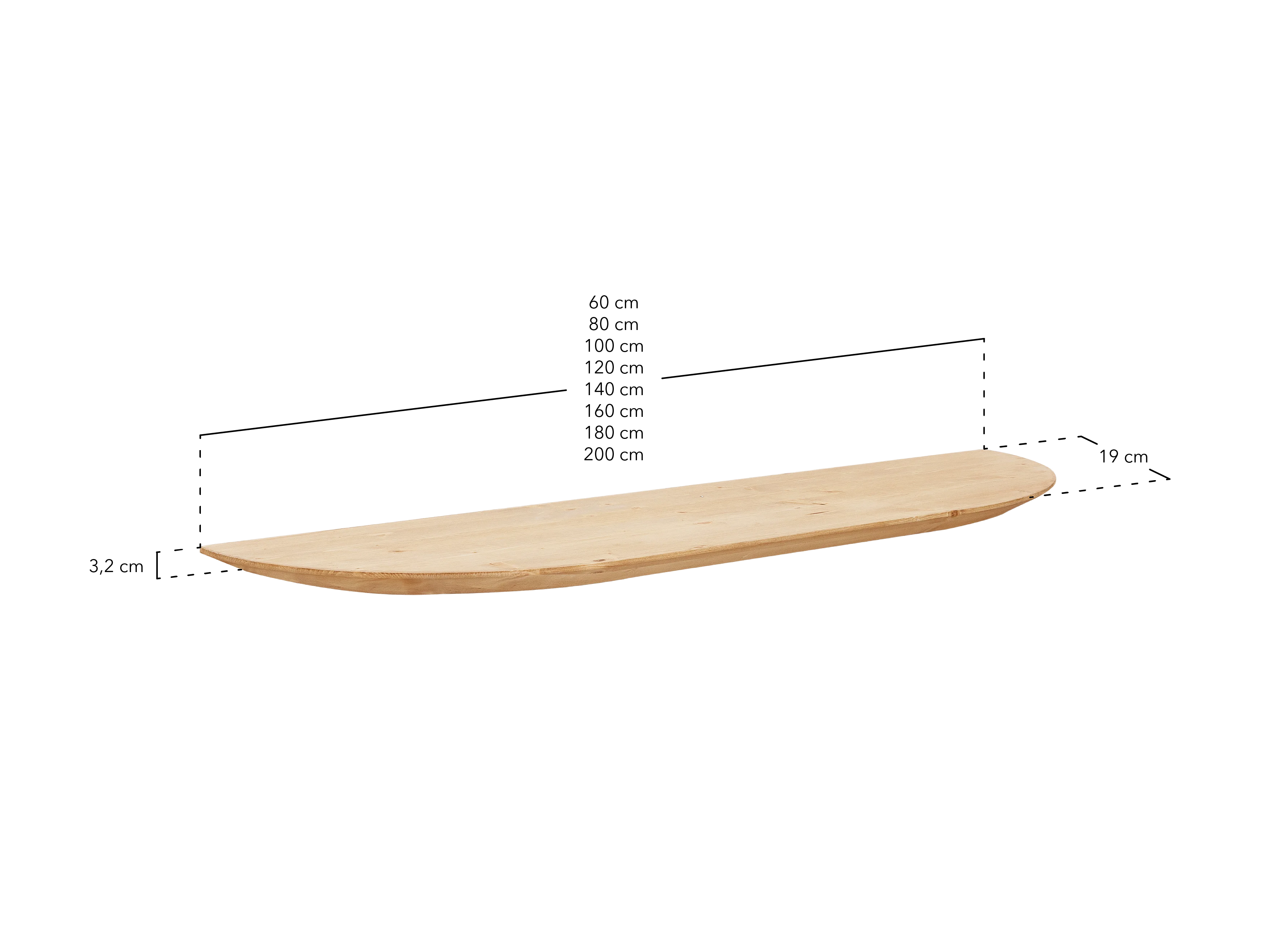 Mensola arrotondata in legno massello in tono noce 200x3,2x19,65cm - BLOOM - DECOWOOD