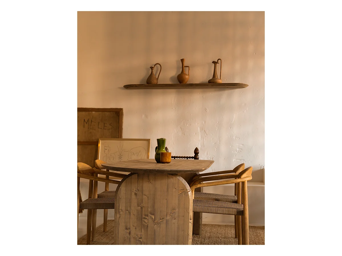 Set 3 ripiani arrotondati in legno massello in tono marrone chiaro 140x3,2x19,65cm - BLOOM - DECOWOOD