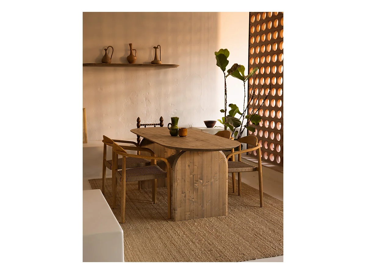 Set 4 ripiani arrotondati in legno massello in tono marrone chiaro 140x3,2x19,65cm - BLOOM - DECOWOOD