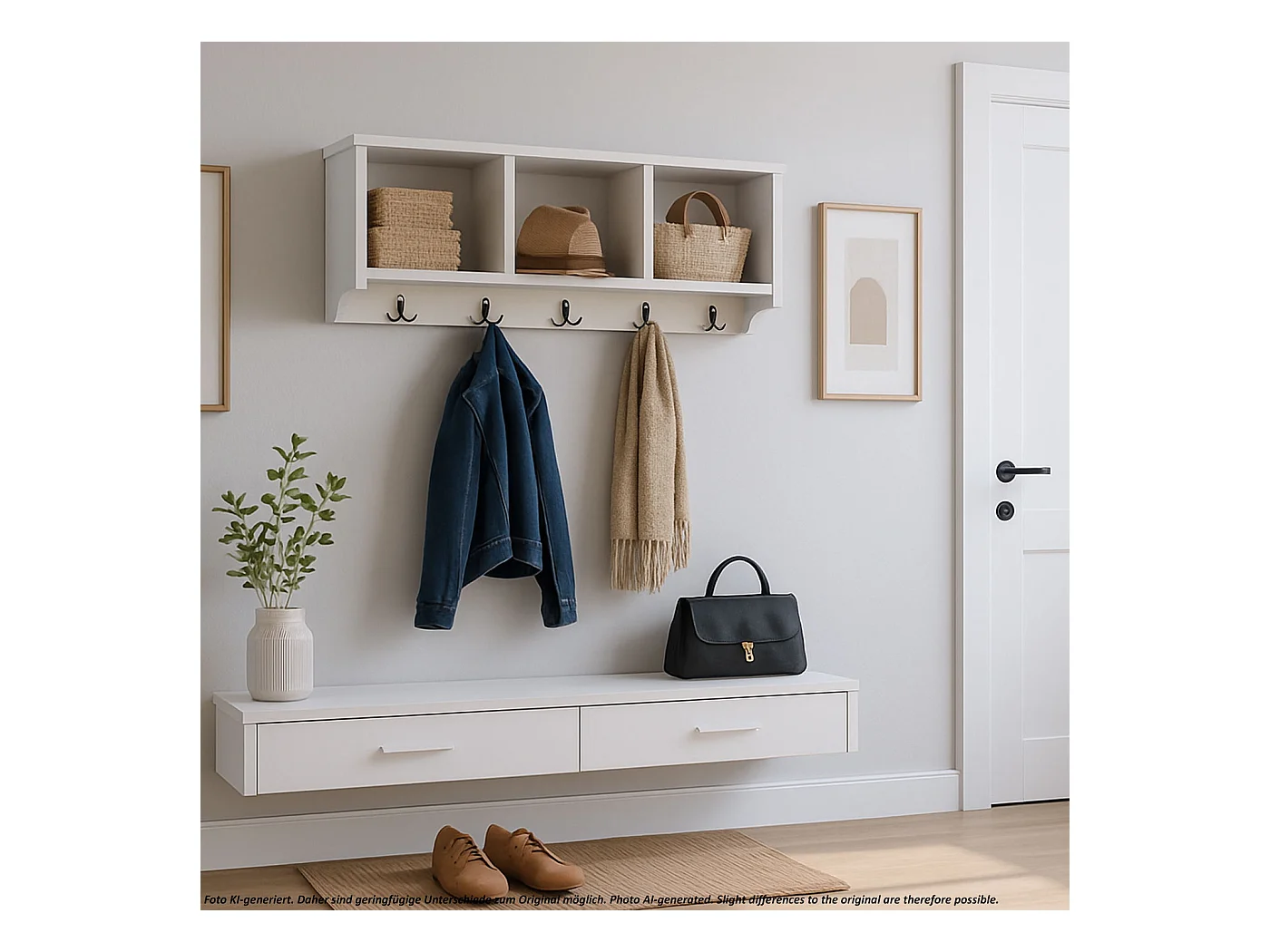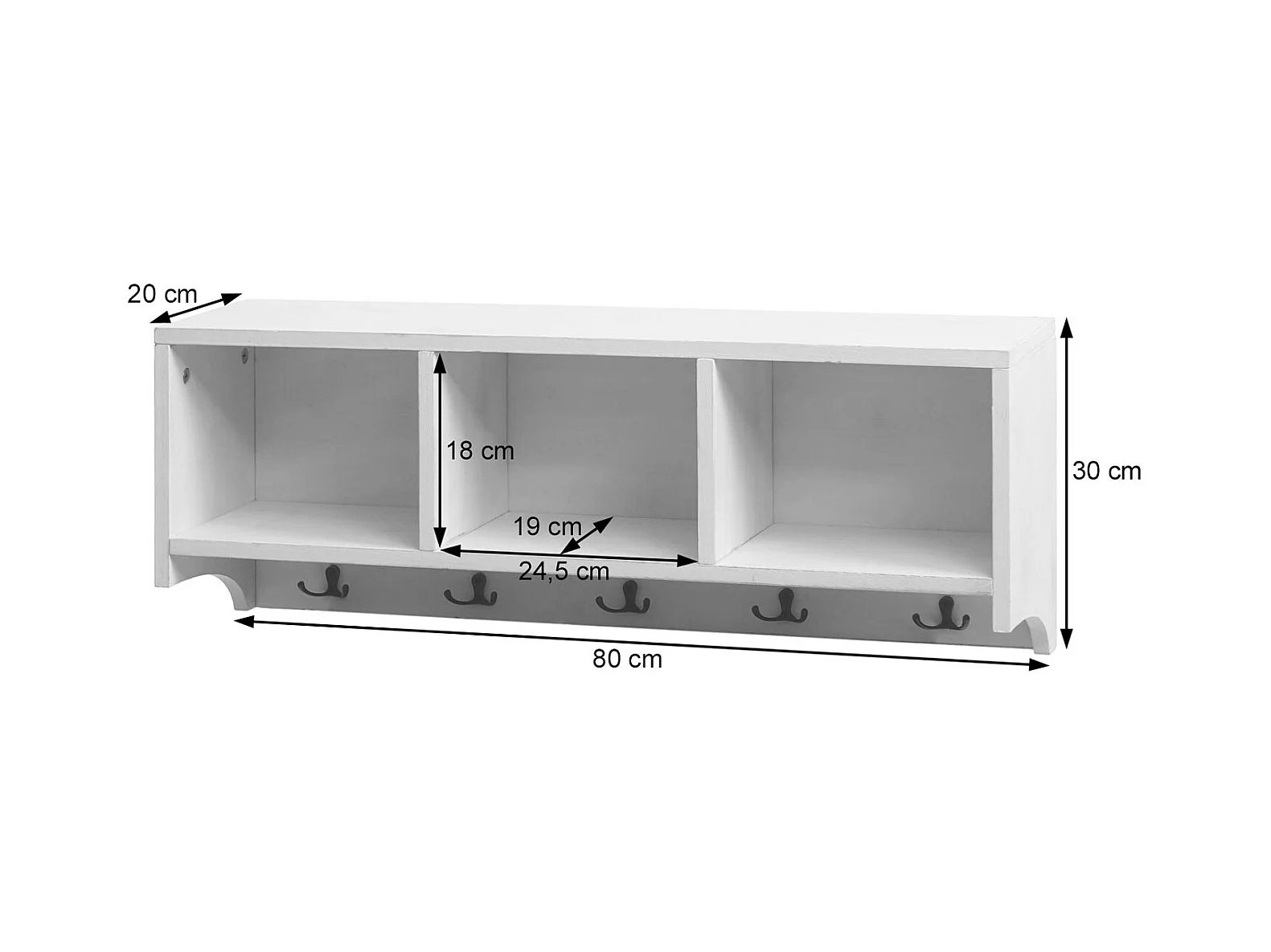 Mensola attaccapanni pensile MCW-K49 MDF da legno paulonia 30x80x20cm bianco shabby