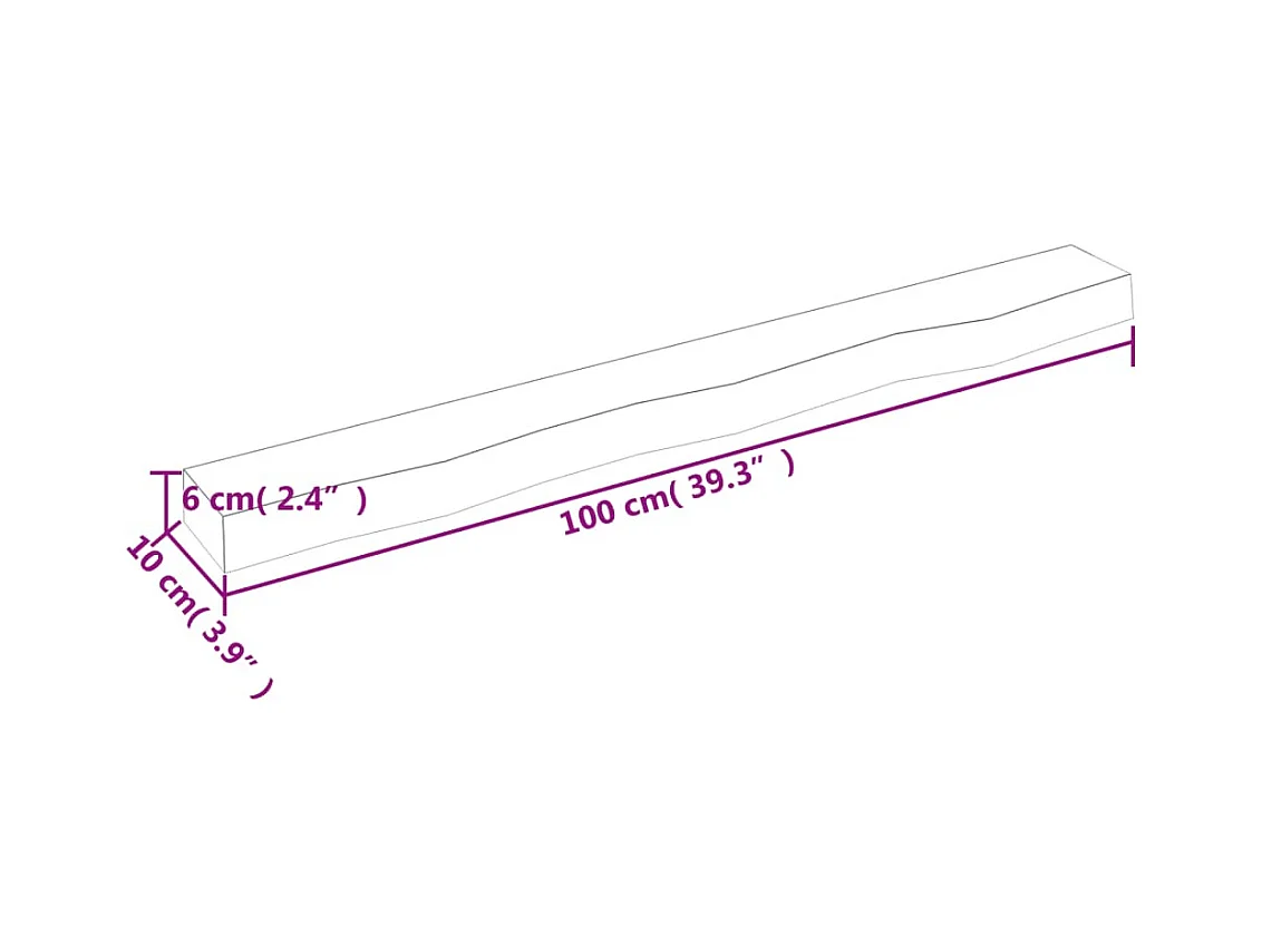 Mensola da parete 100x10x6 cm in legno massello di rovere non trattato