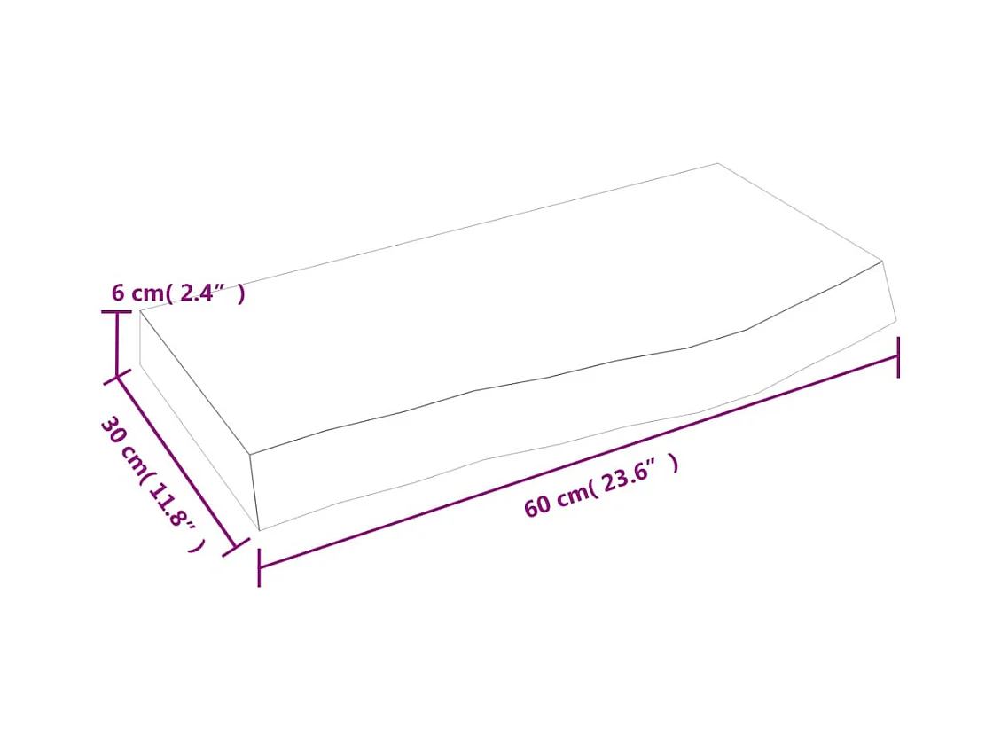 Mensola da parete 60x30x(2-6) cm in legno massello di rovere non trattato