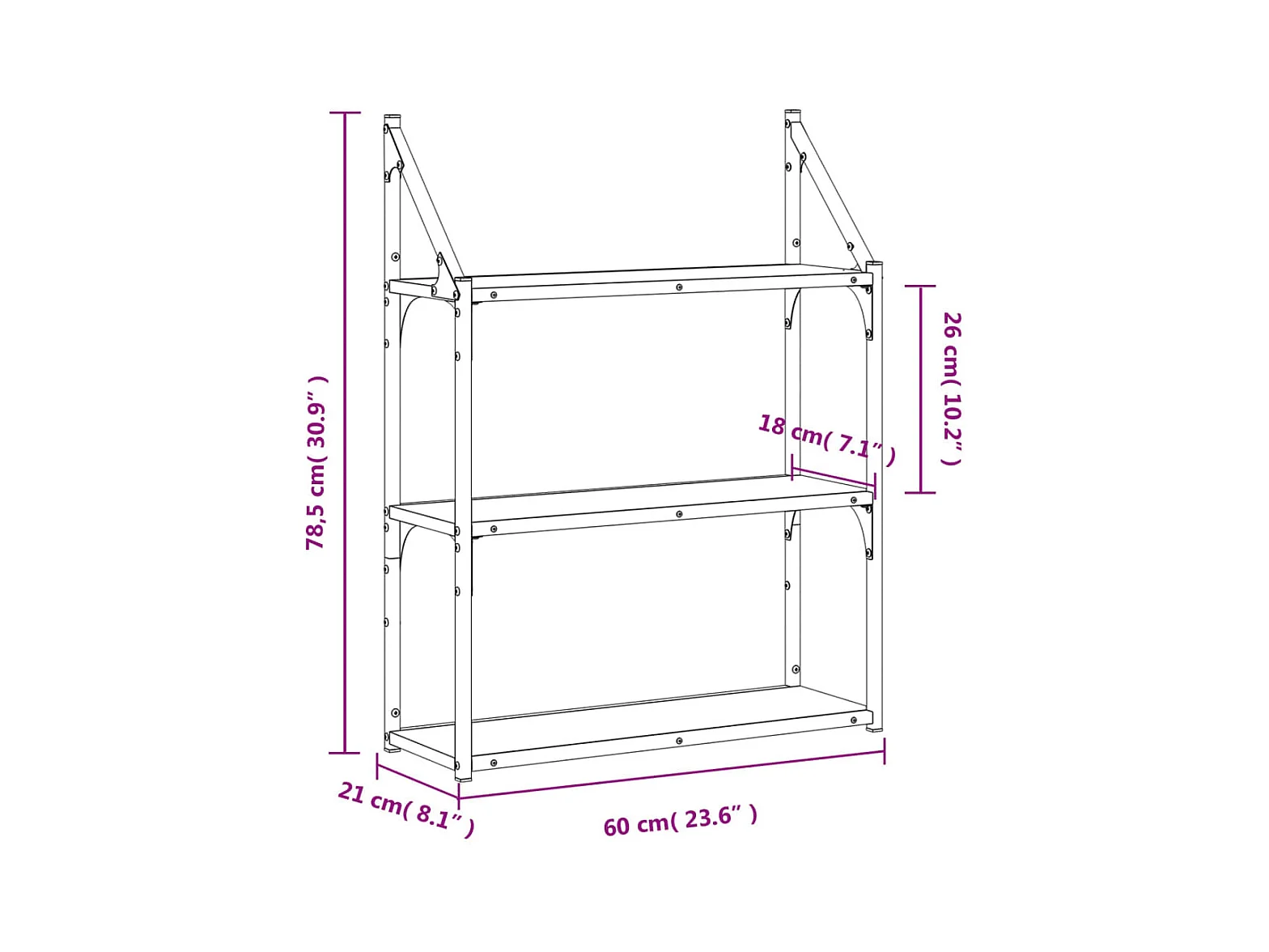 Mensola da parete a 3 ripiani in rovere affumicato 60x21x78,5 cm