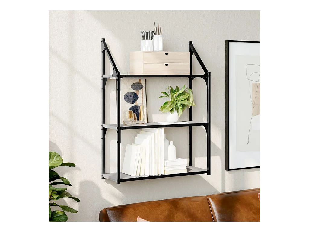 Mensola da parete a 3 ripiani Sonoma Grey 60x21x78,5 cm